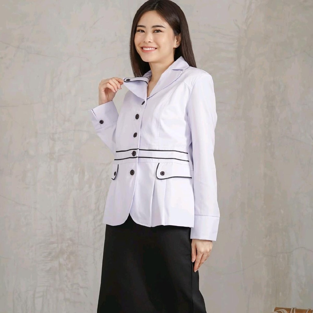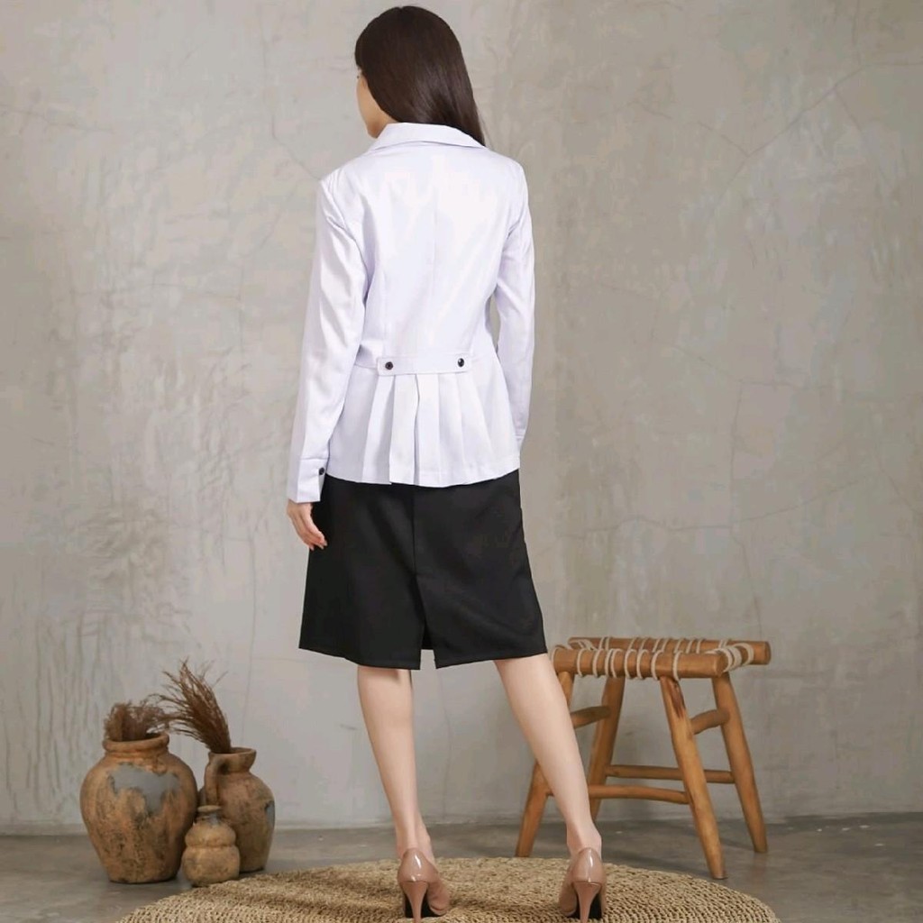 Atasan jungkis Wanita Krah lidah putih kombinasi hitam setelan rok A/celana panjang/rok. span hitam bahan katun FREE HIJAB Panjang Kantong