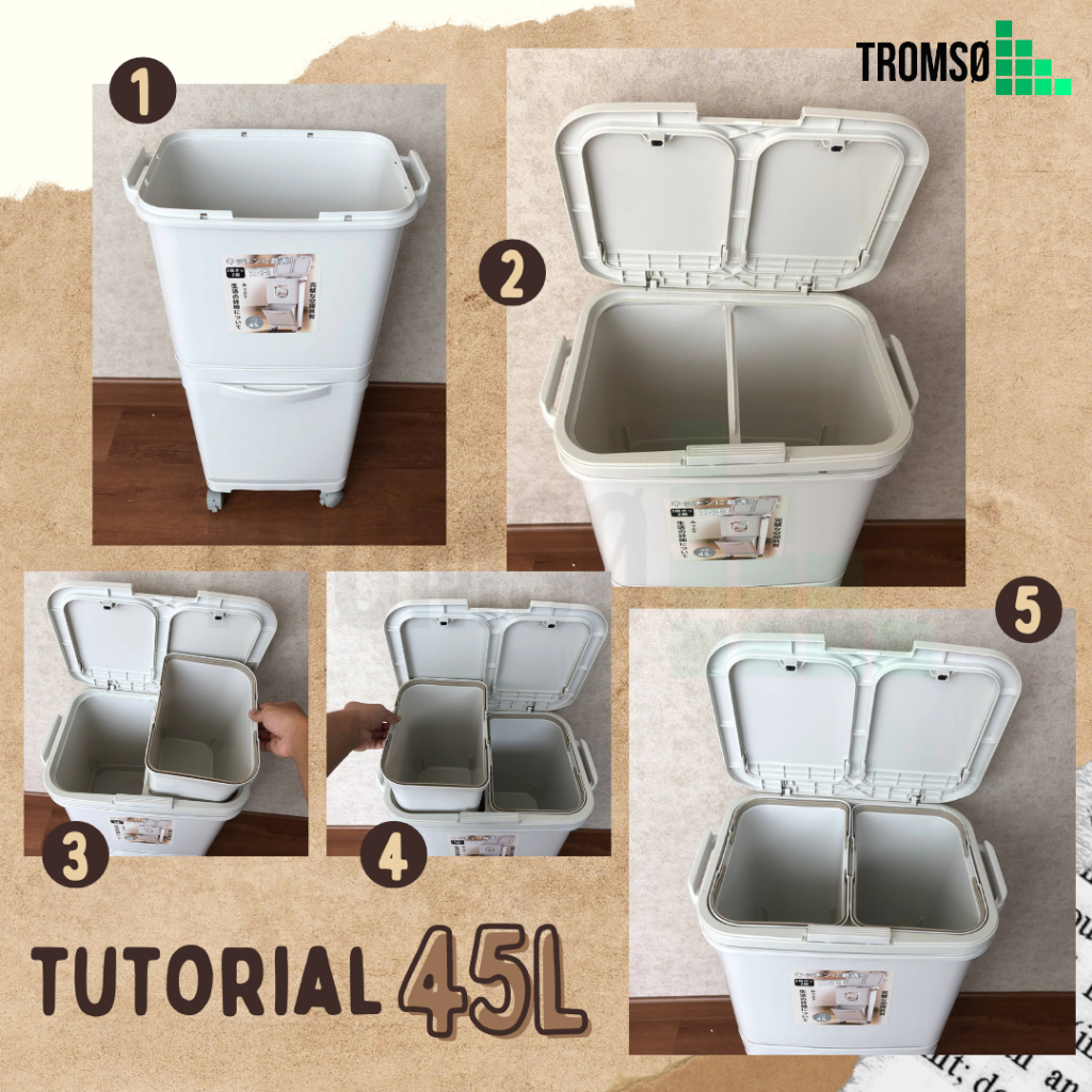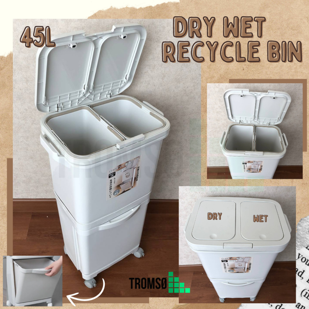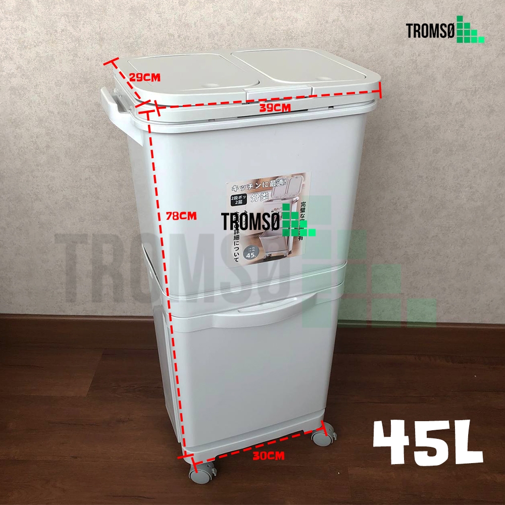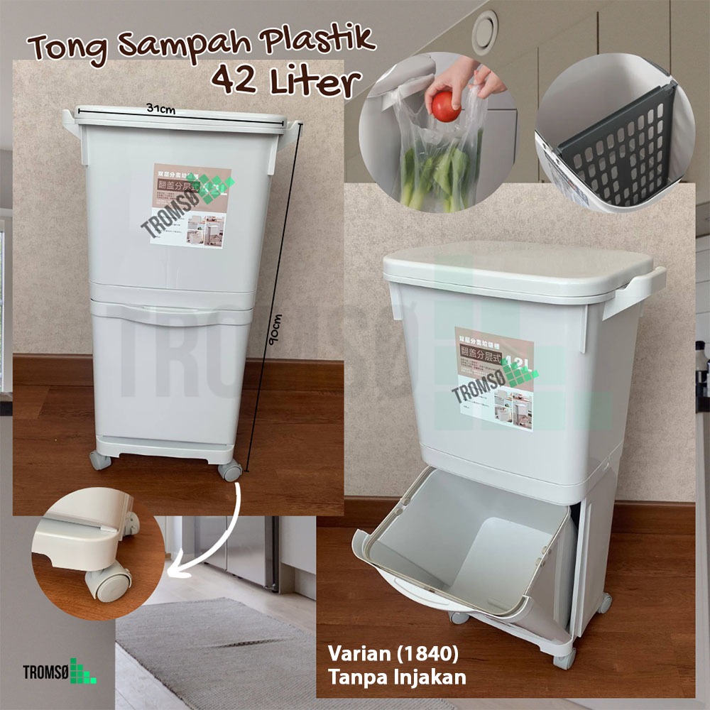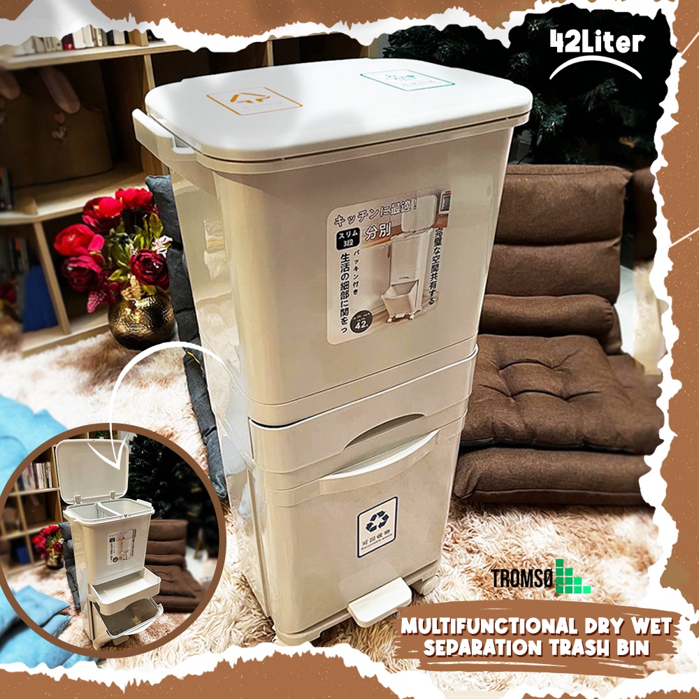 Tromso Tempat Sampah Roda Penyimpanan Besar Serbaguna 42/45 LITER - Multifunctional Dry Wet Separation Trash Bin