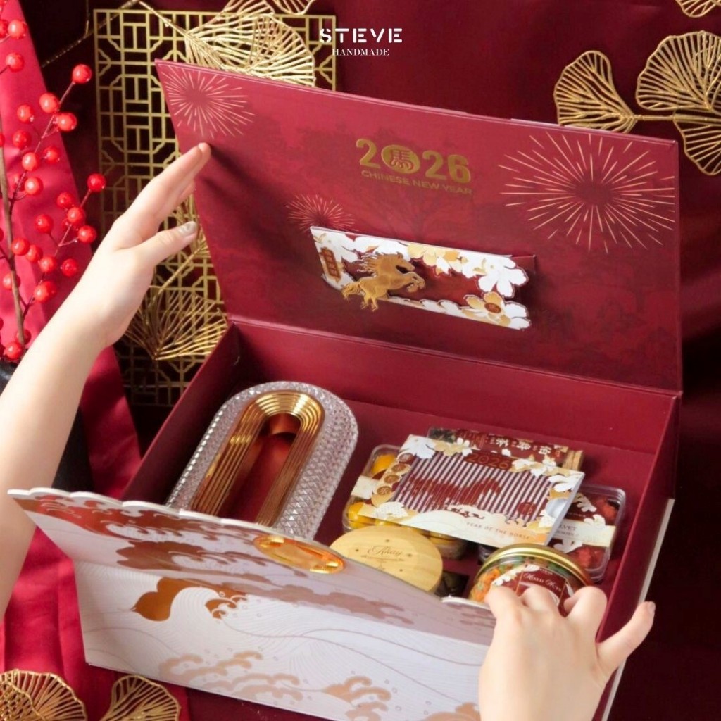 Hampers CNY Bingkisan Imlek All Set Gallop into Gold Hampers Nastar, Crystal Lamp Tea Infuser Mug Earl Grey Tea Nastar Redvelvet Cookies Mixed Nuts Angpao