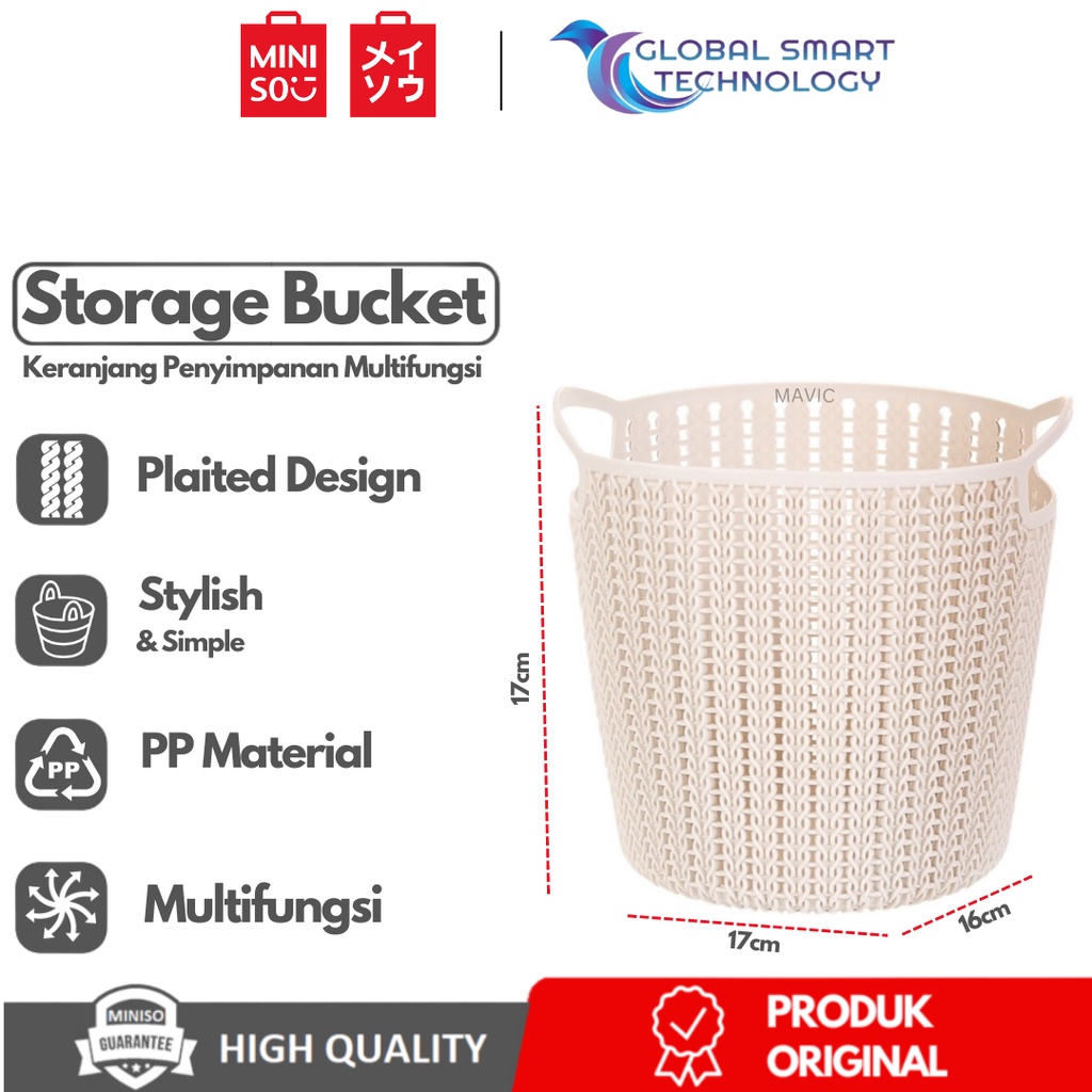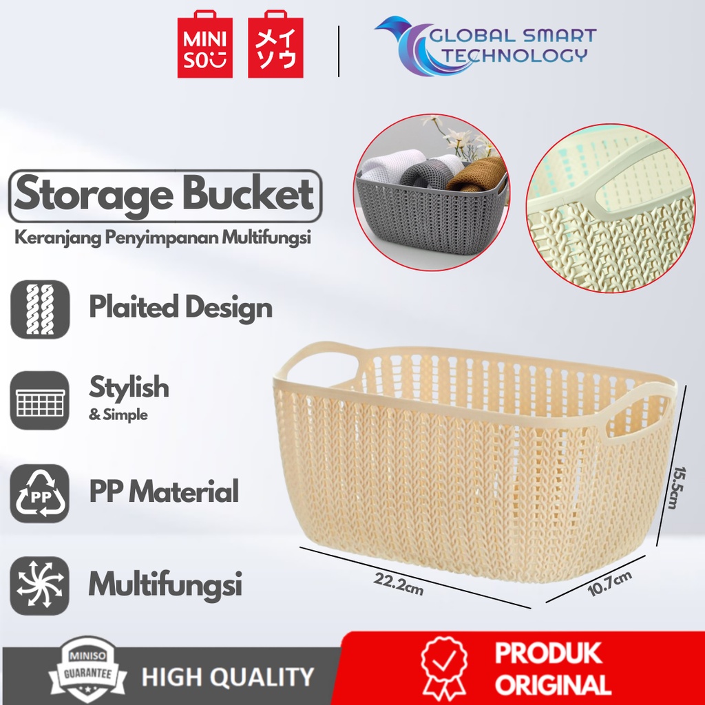 MINISO Keranjang Tempat Penyimpanan Serbaguna Plaited Round Oval Storage Bucket Multifungsi