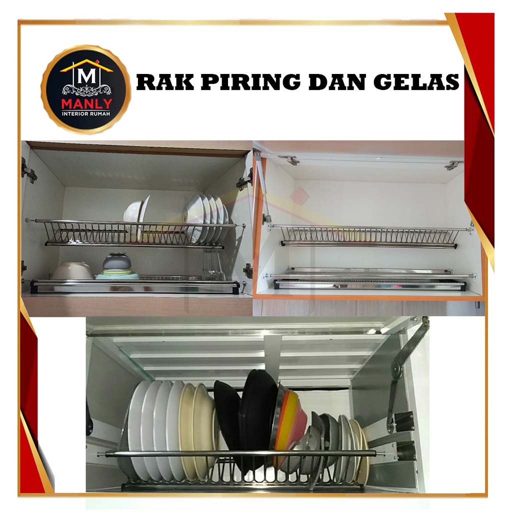 Rak Piring Gantung Tatakan Lemari Kitchen Set Stainless Steel 60 cm - 1 M / Anti Karat
