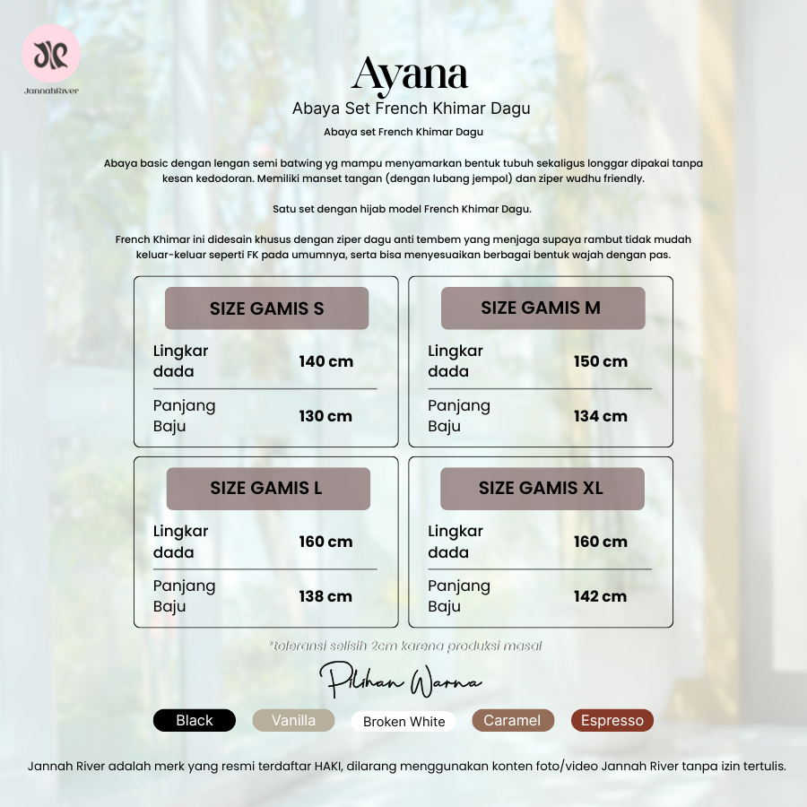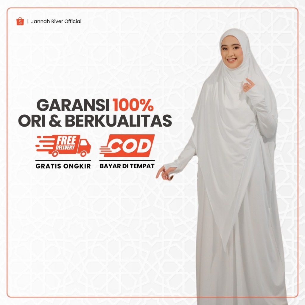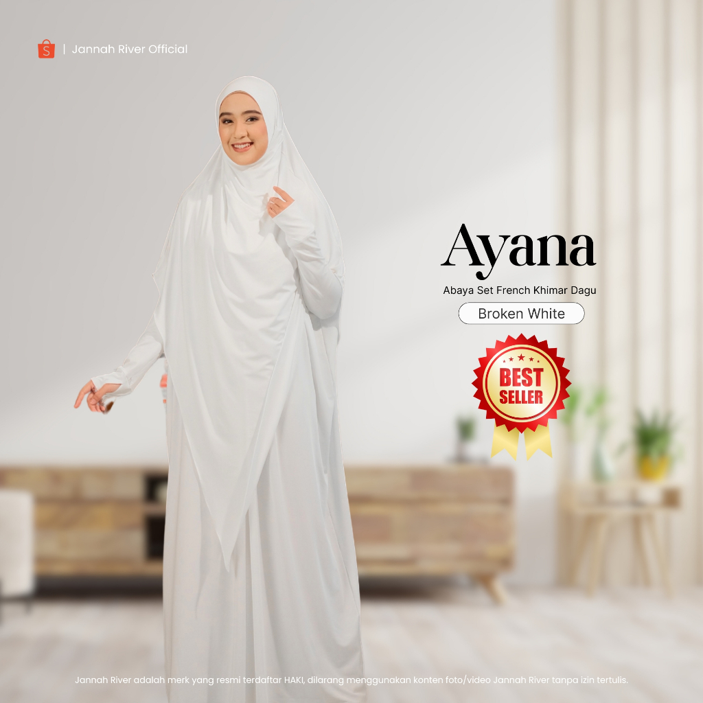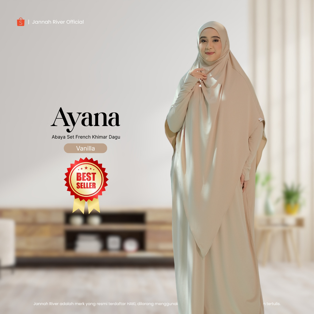 Jannah River Abaya Ayana Set French Khimar Dagu Syari Bahan Jersey Korea Premium Adem Gamis Seragam Haji & Umroh