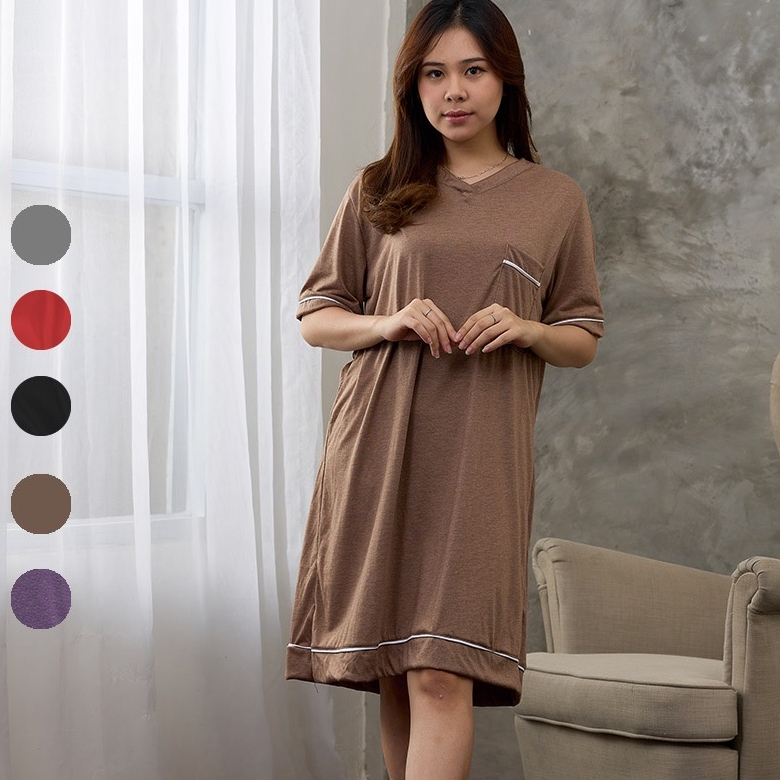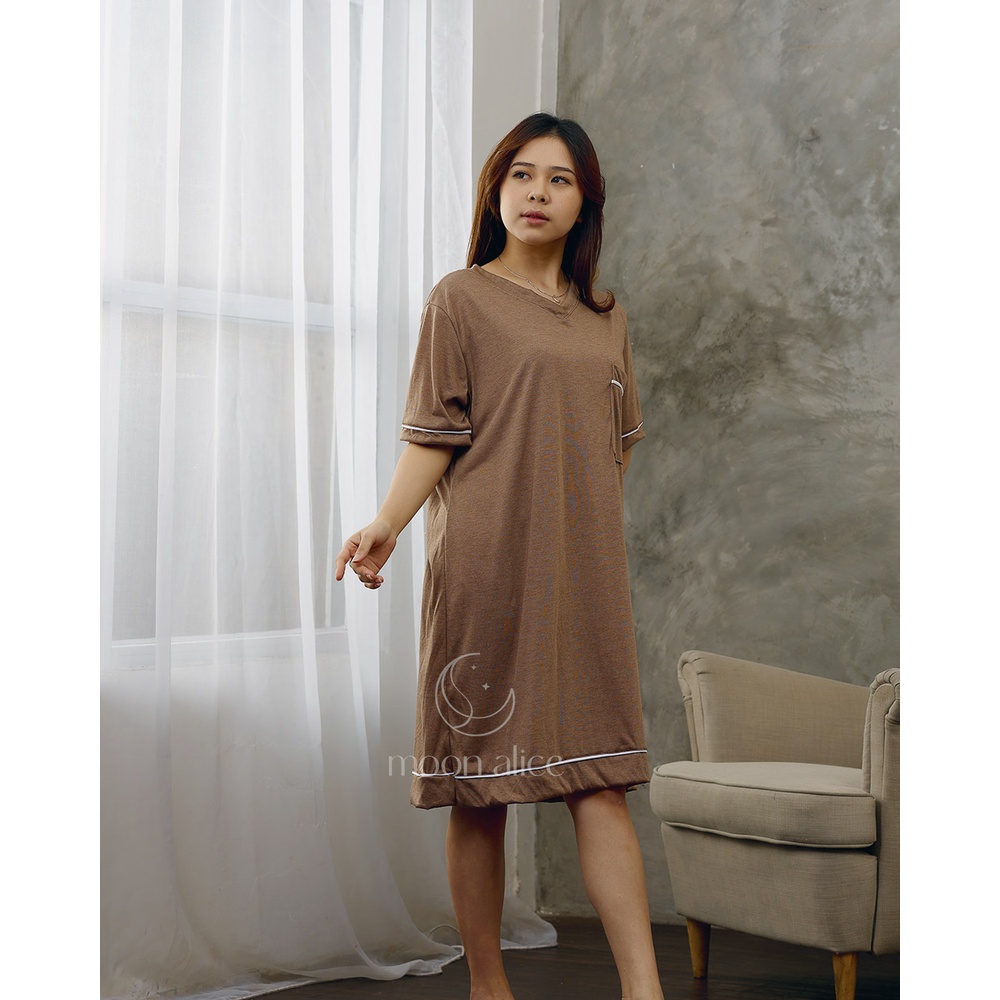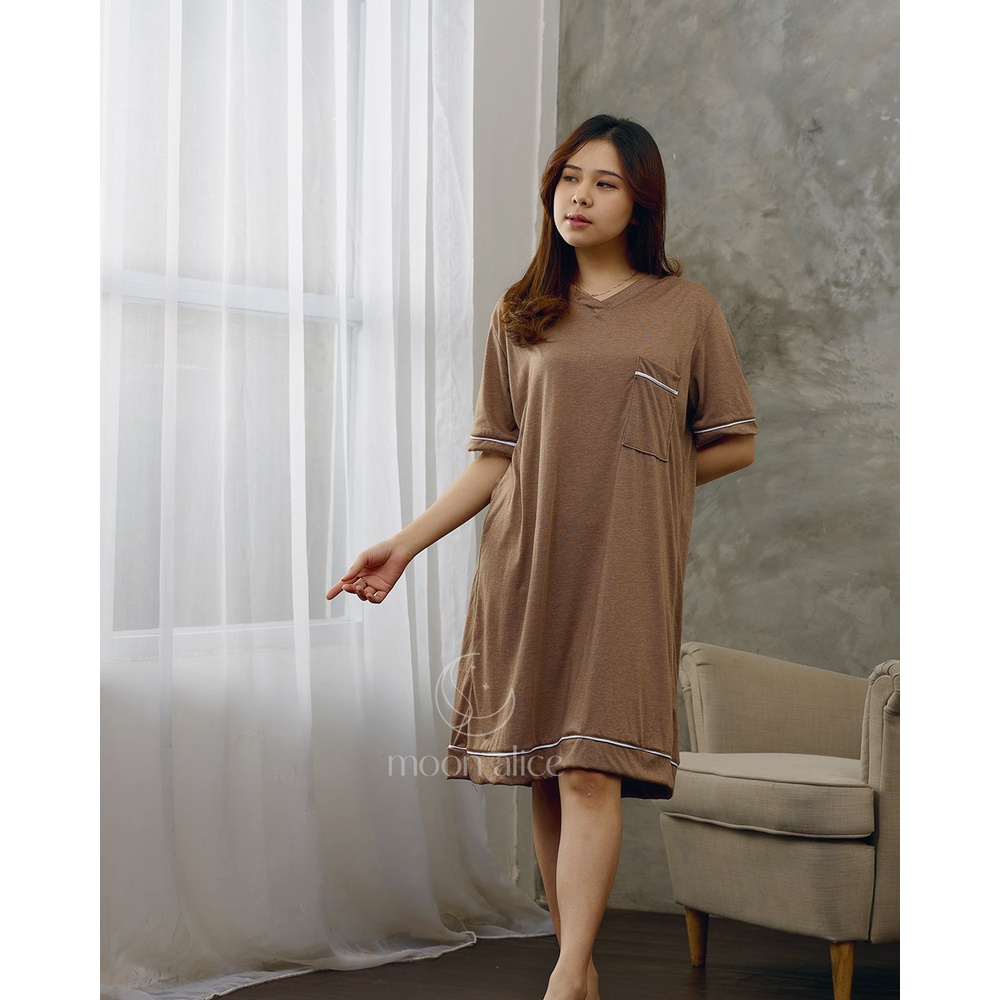 Moon Alice Daster Kekinian Panjang Terbaru Piyama Dress Terusan Baju Tidur Wanita Baju Santai Sederhana Sedia Ukuran Jumbo PY17
