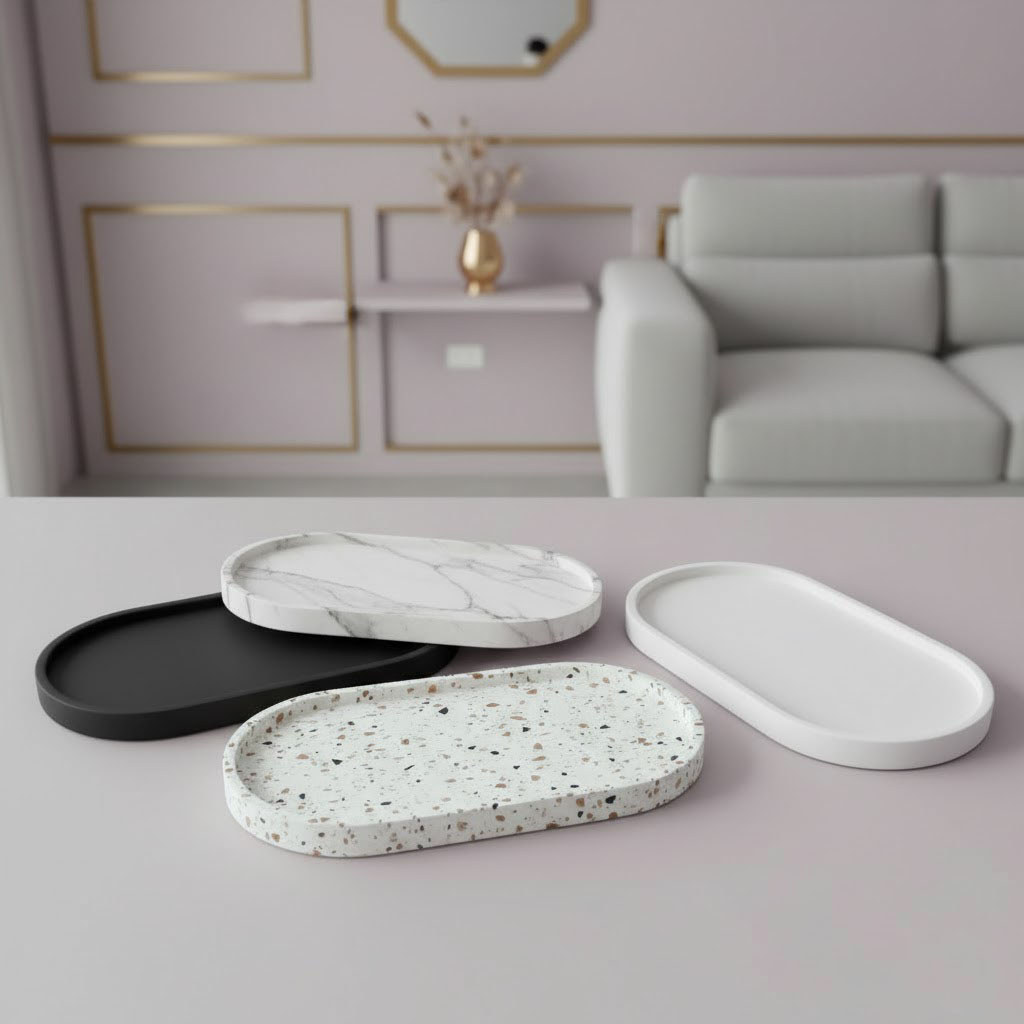 Tatakan Gelas Oval Ukuran Besar | Nampan Semen | Big Concrete Coaster/Tray