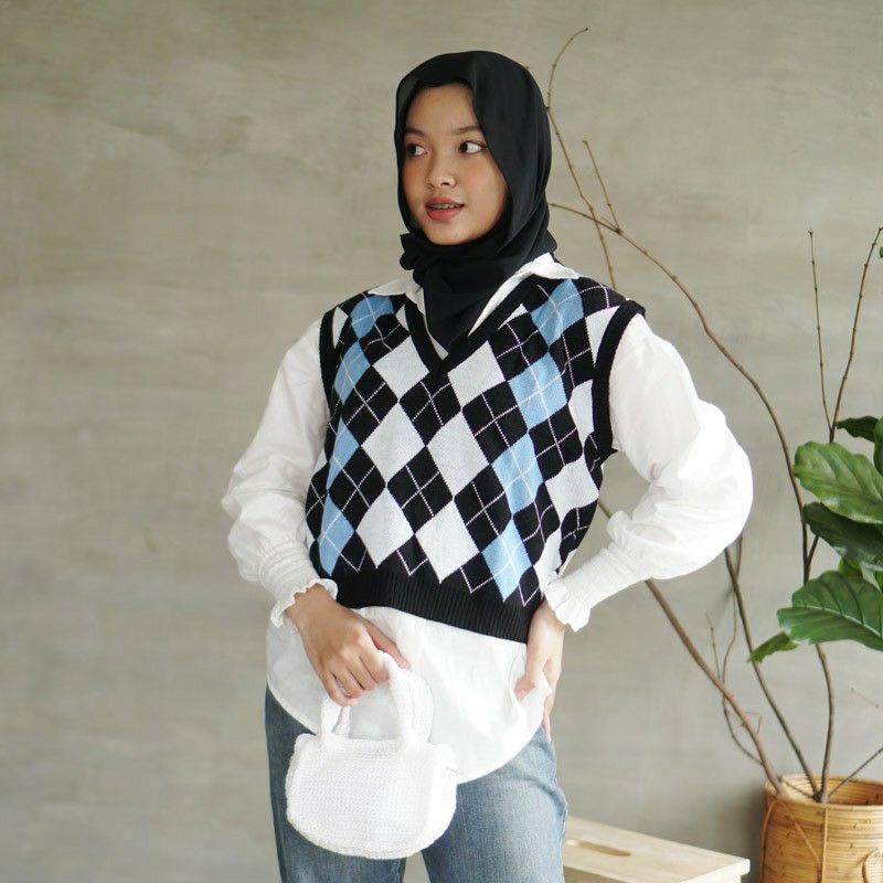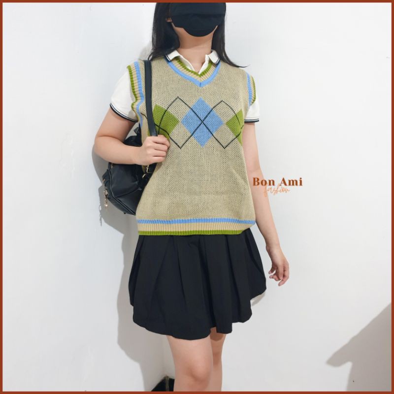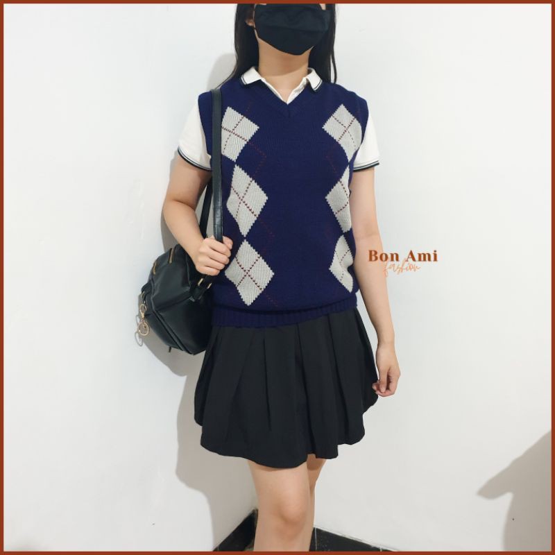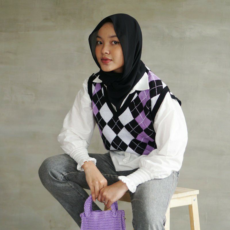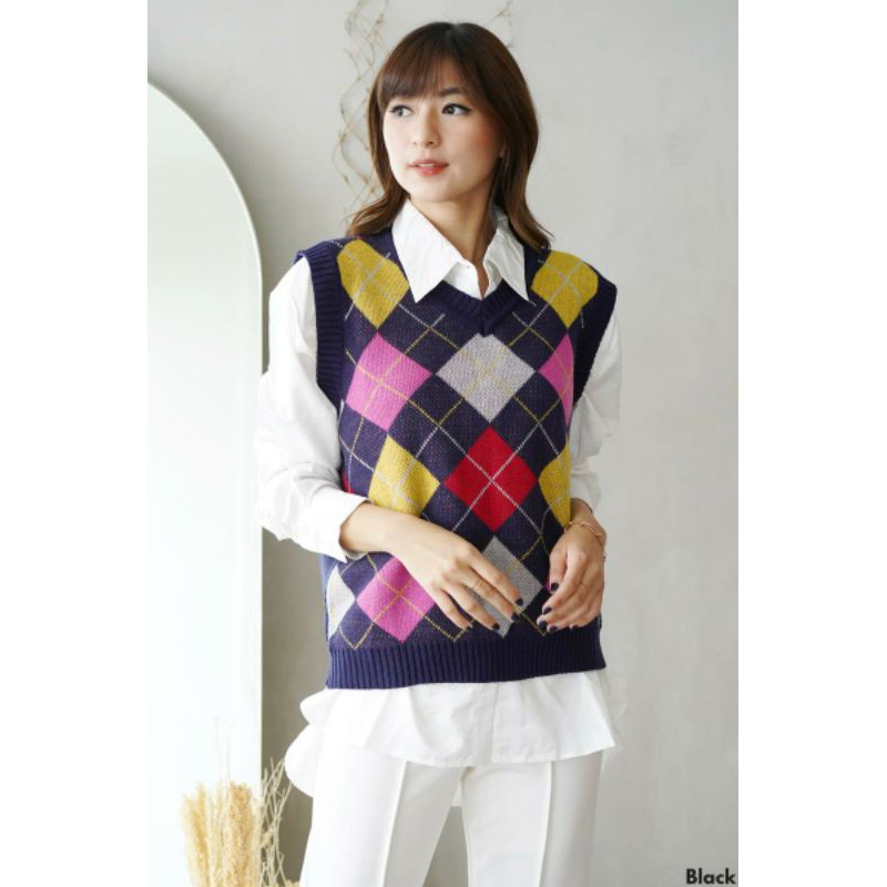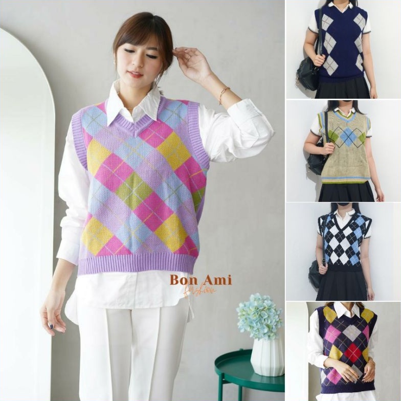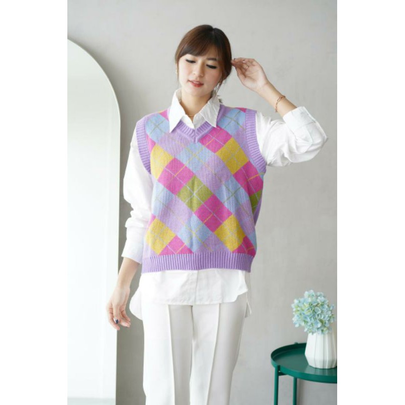 BONAMI Diamond Knit Vest - Rompi Rajut Sido Vest Rajut Motif Argyle/Kotak/Houndstooth Korean Style Lilac