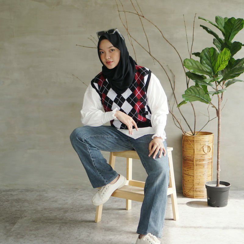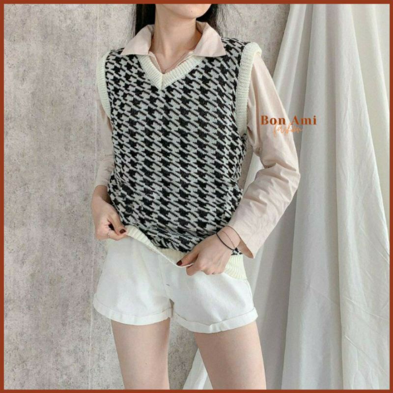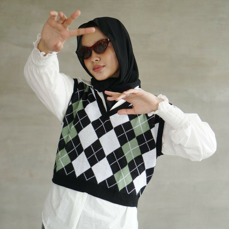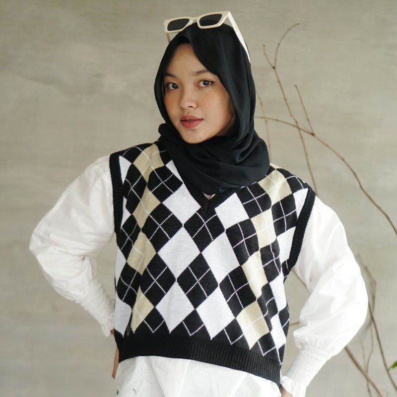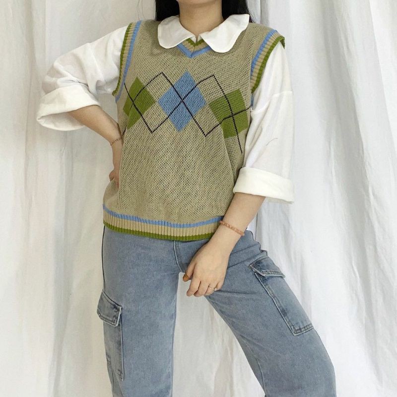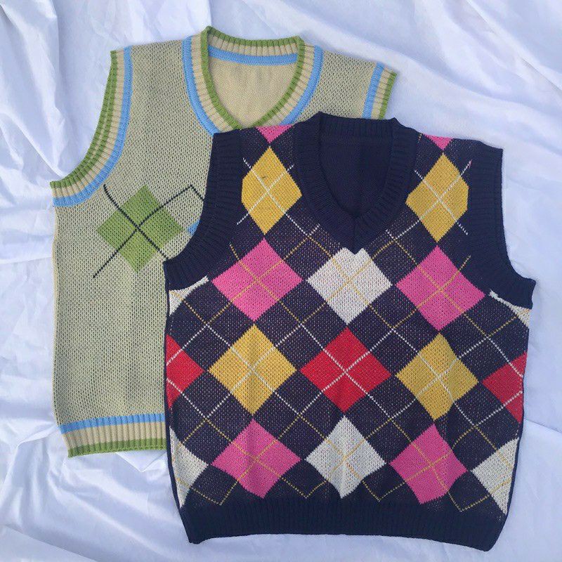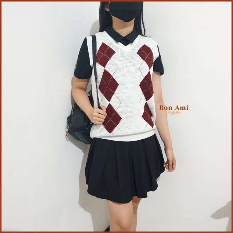 BONAMI Diamond Knit Vest - Rompi Rajut Sido Vest Rajut Motif Argyle/Kotak/Houndstooth Korean Style Lilac