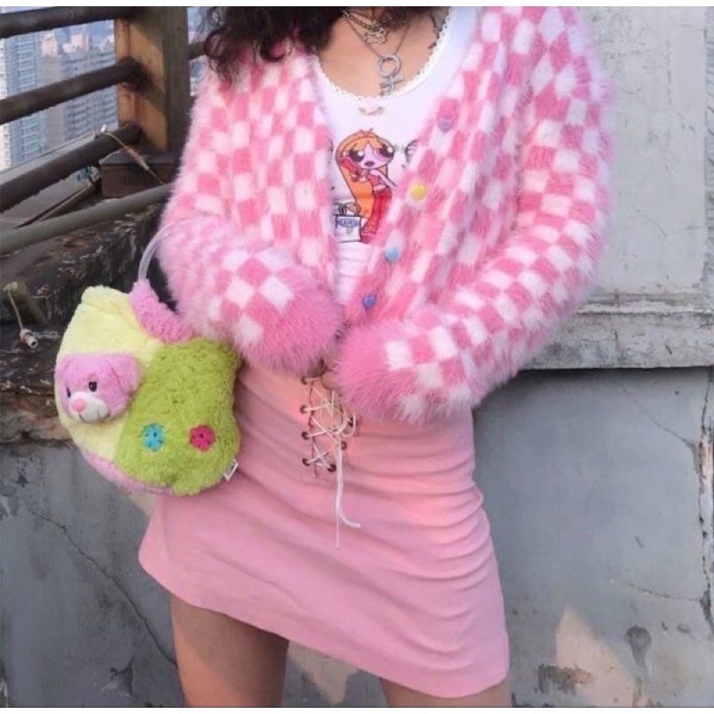 Ᏼᥲᖯเꫀ’ ᥉ Lofy Chekered Cardigan