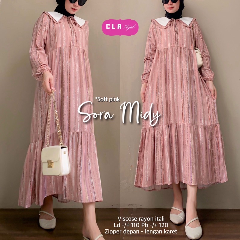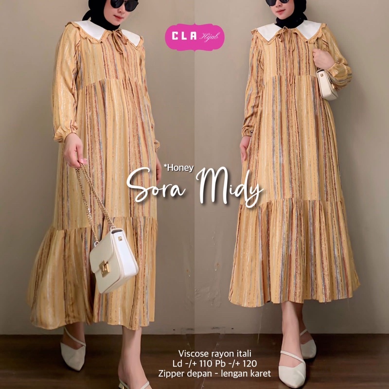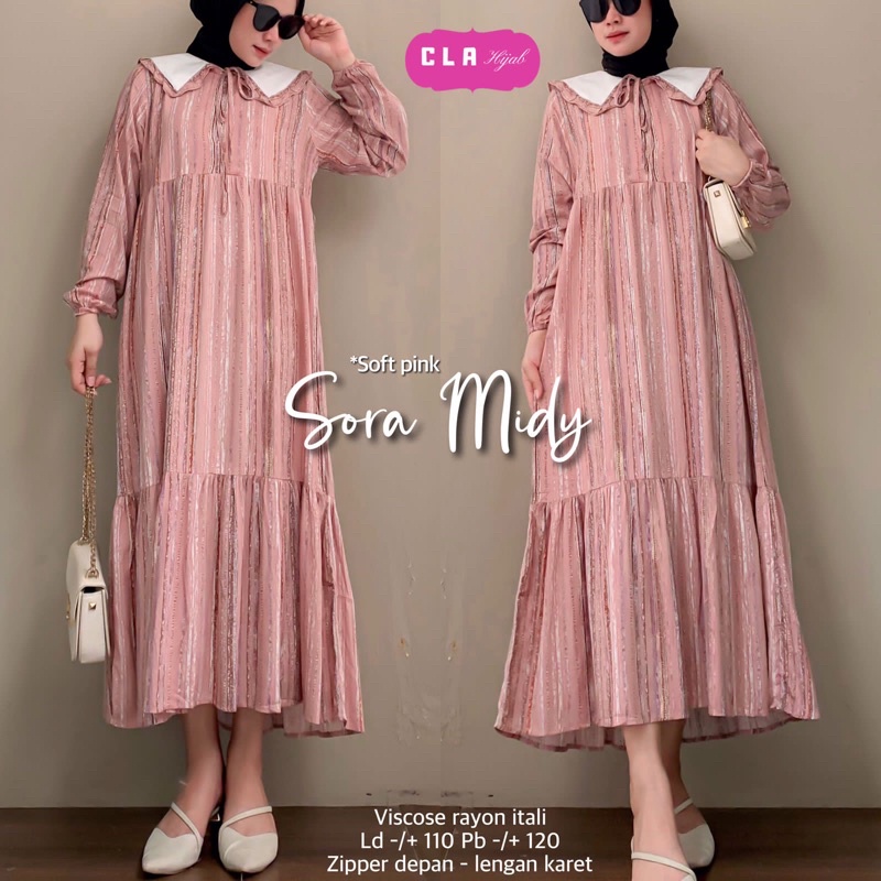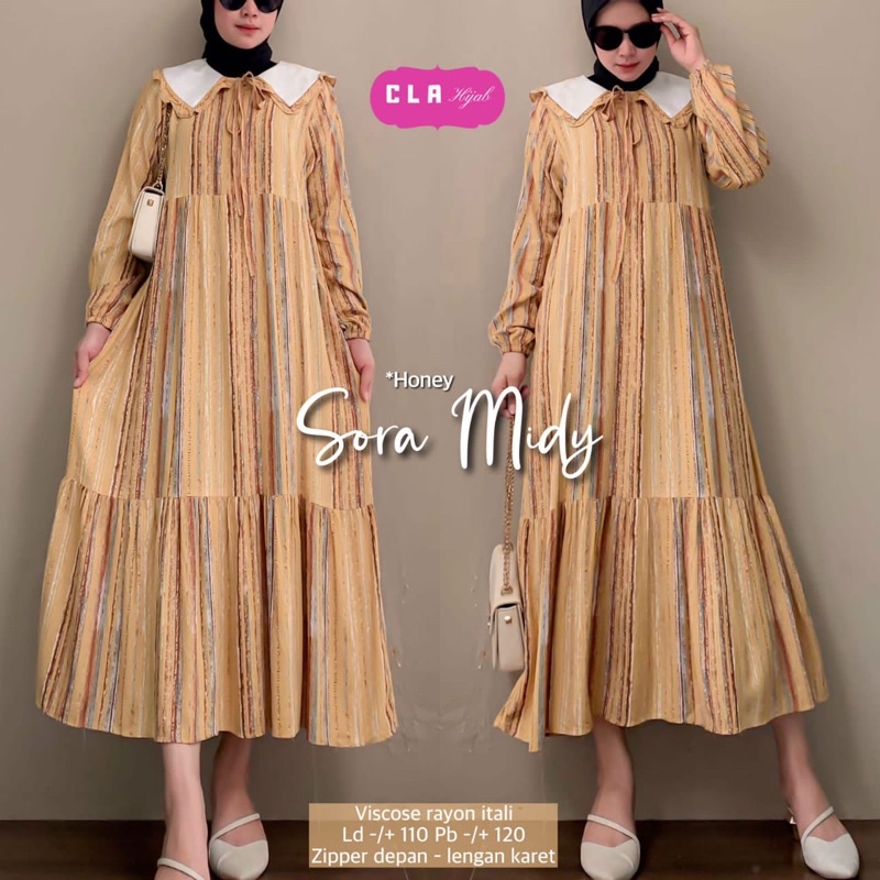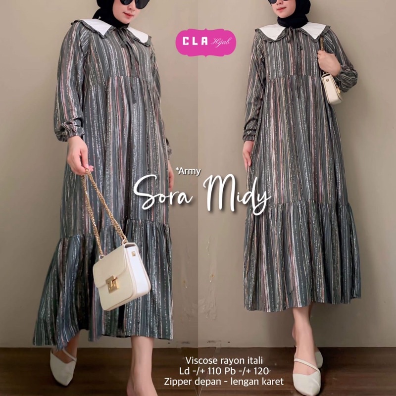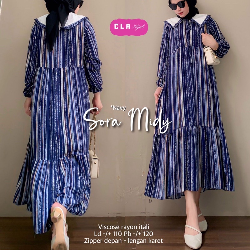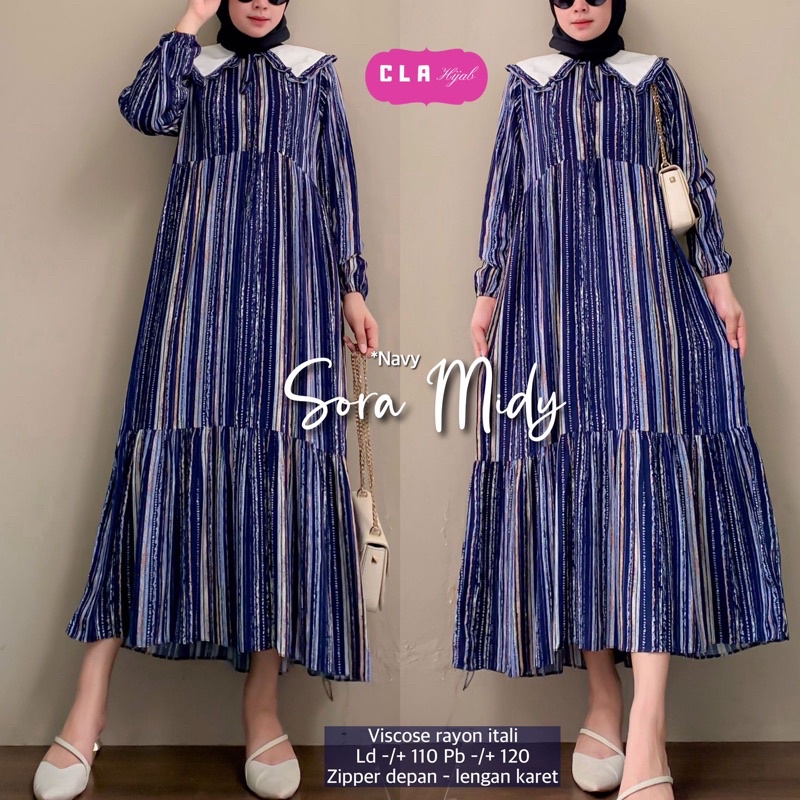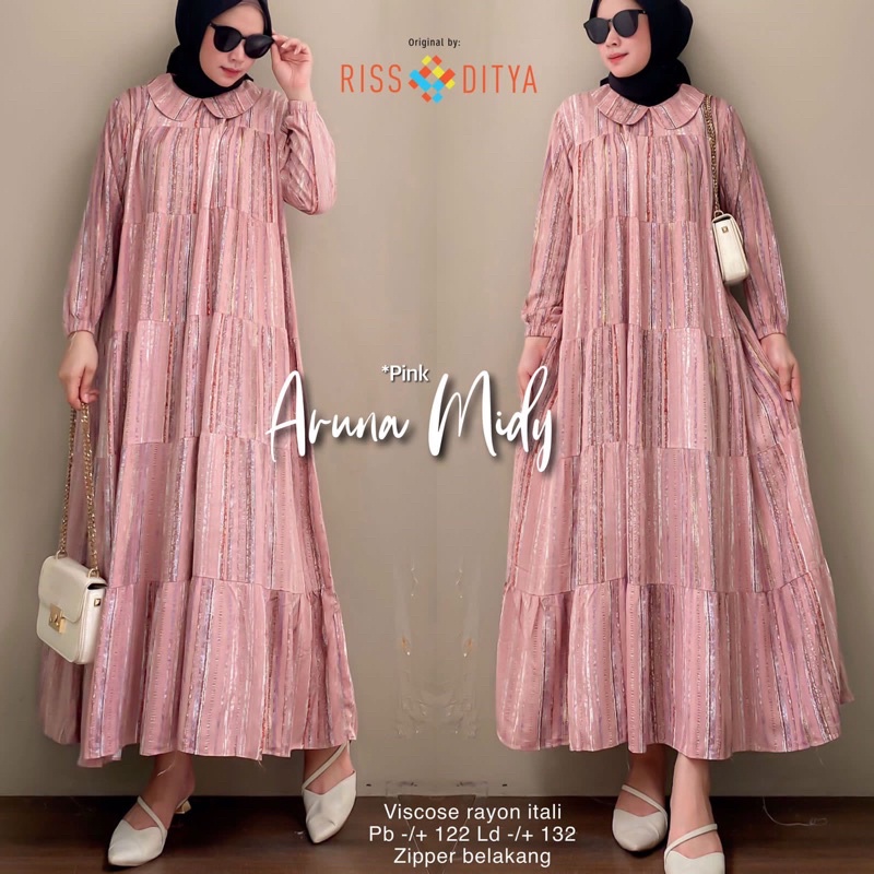 Aruna Midi Dress Sora Midi Dress Wanita Kekinian Motif Garis Salur Jumbo XXXL Ld 122