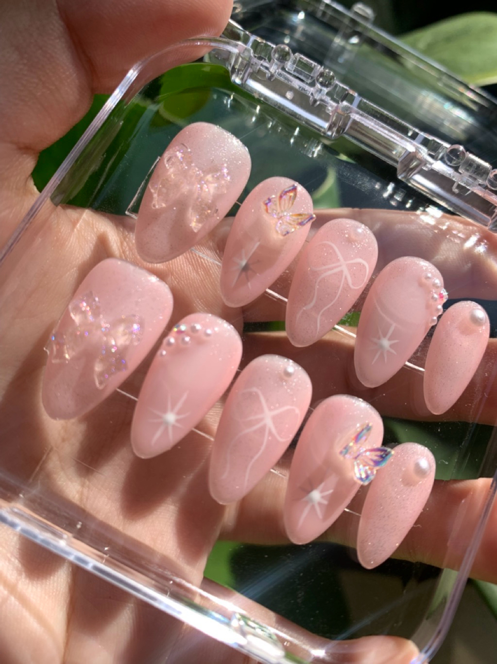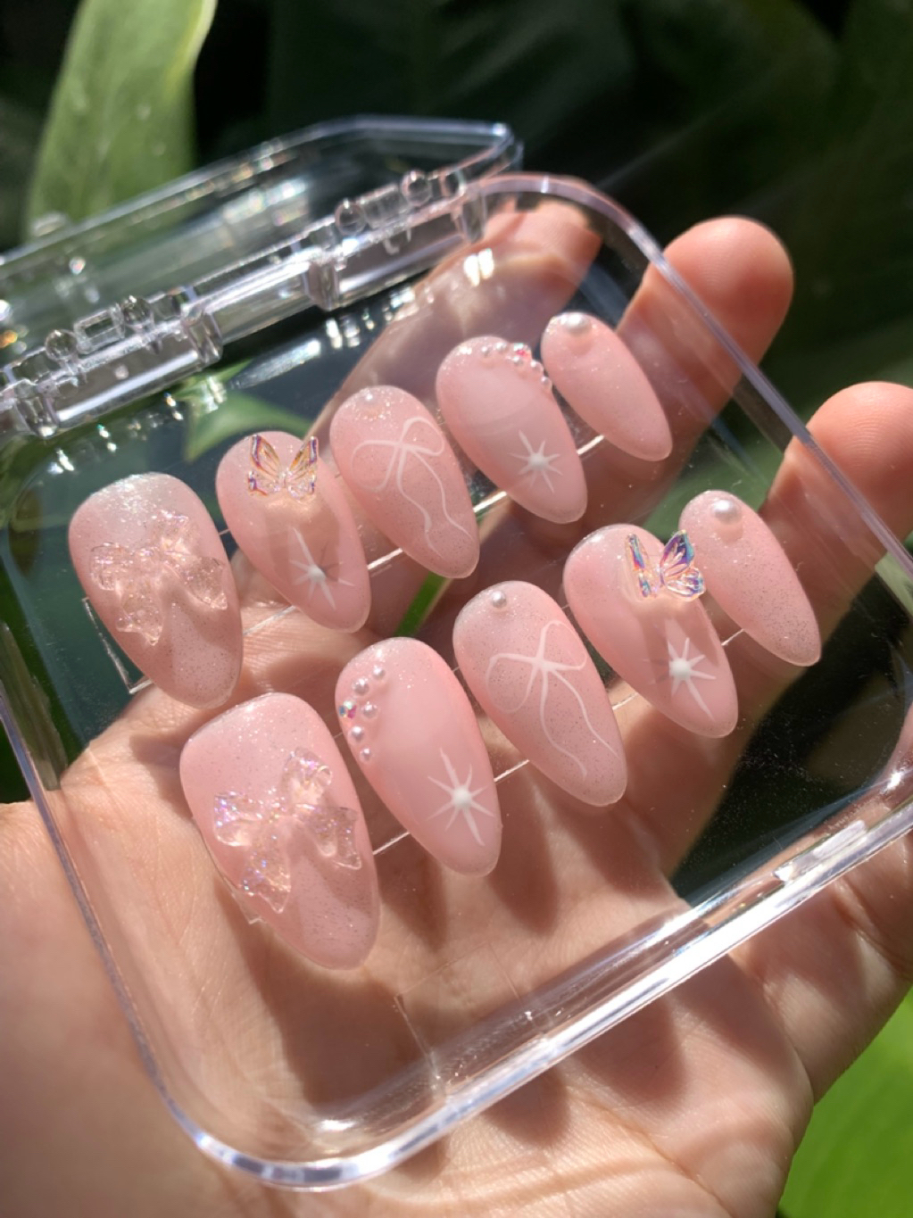 [Latelier Nails] Press On Nails Premium | Baby Pink Coquette Nails | Bisa Custom Warna
