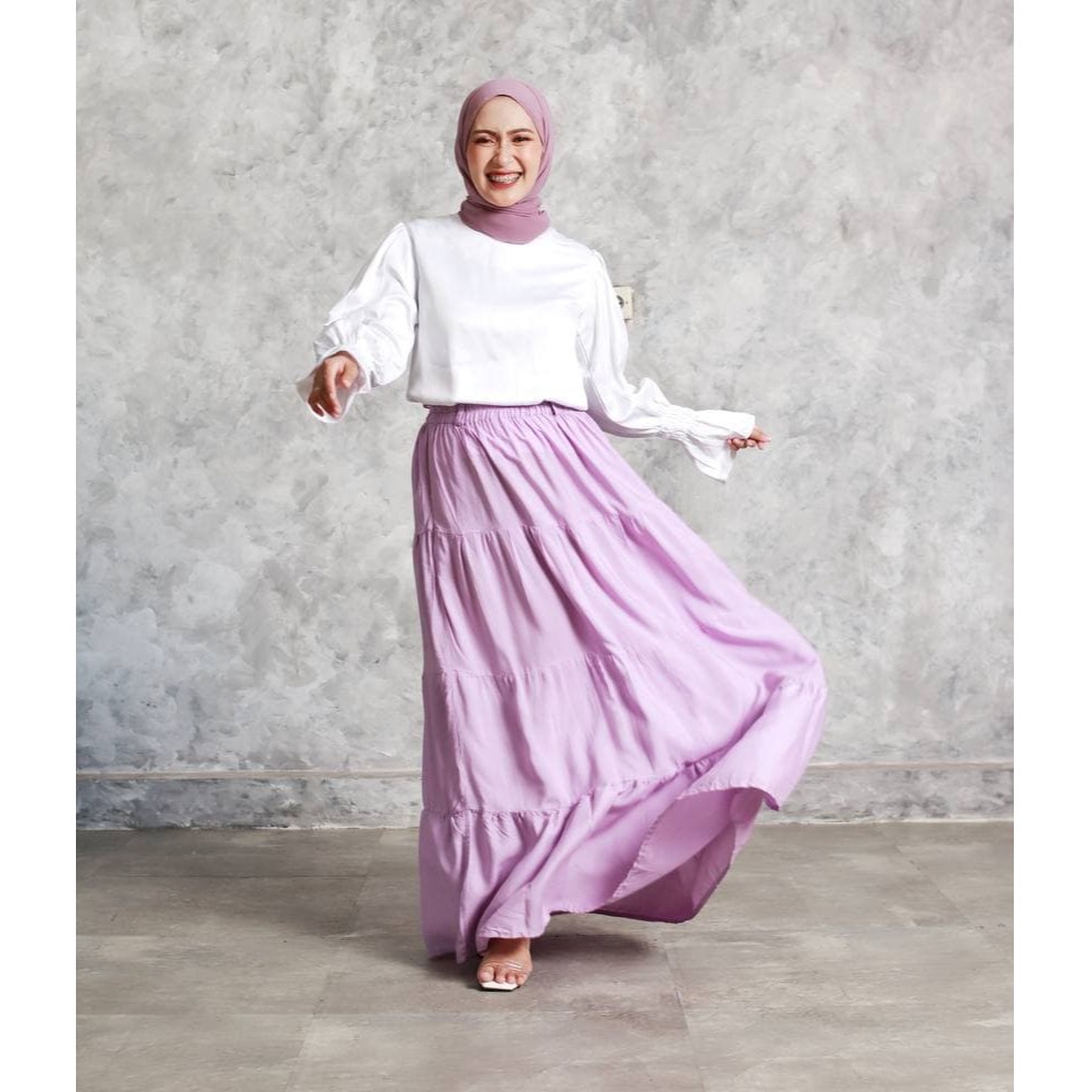 Rok Ruffle Korea 4 Susun / Rok Wanita Korea / Skirt Korean Style / Rok Panjang Wanita Muslim - eleonor.idn