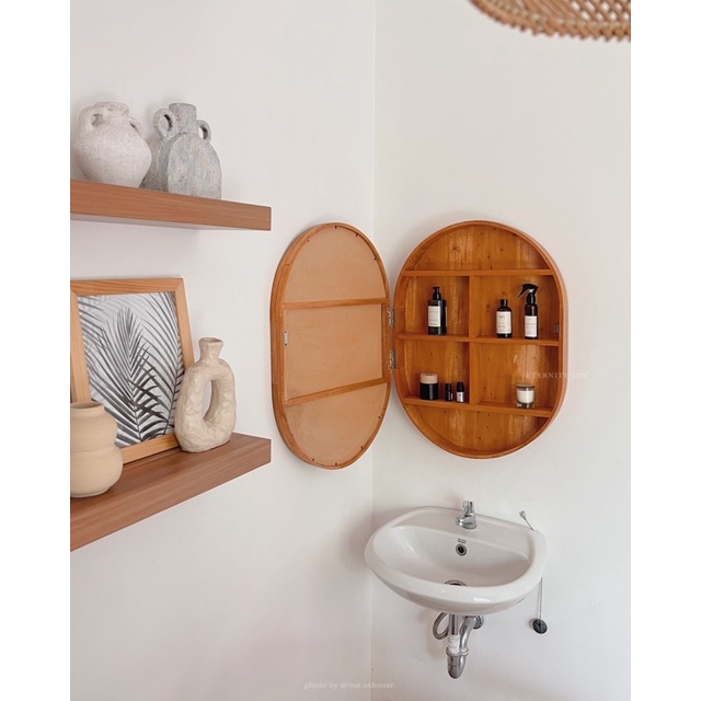 Oval Cabinet Mirror - Cermin Nakas Oval - Rak Gantung Cermin Aesthetic Kamar Mandi