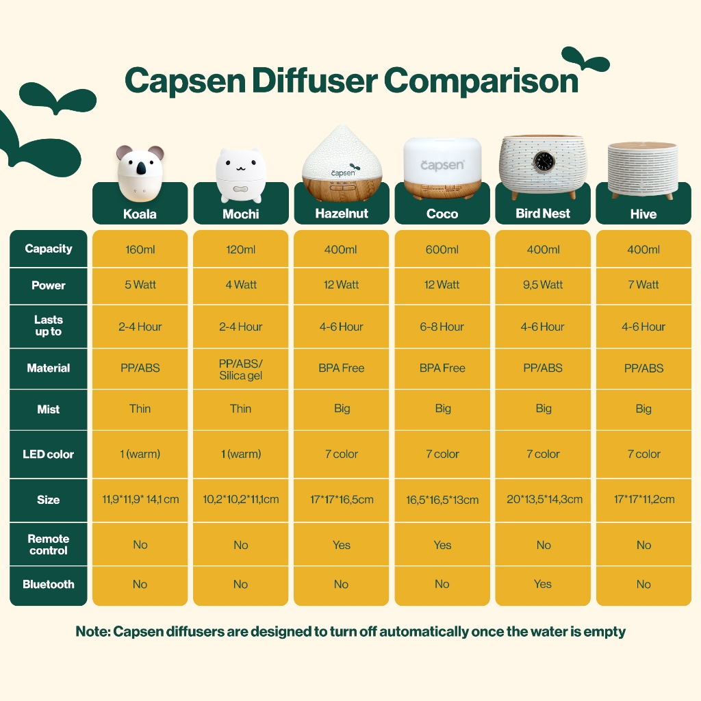 CAPSEN Kids Diffuser Essential Oil Aromatherapy Diffuser Humidifier Minyak Esensial