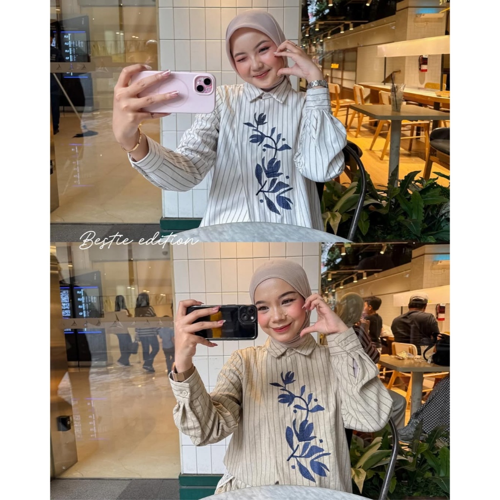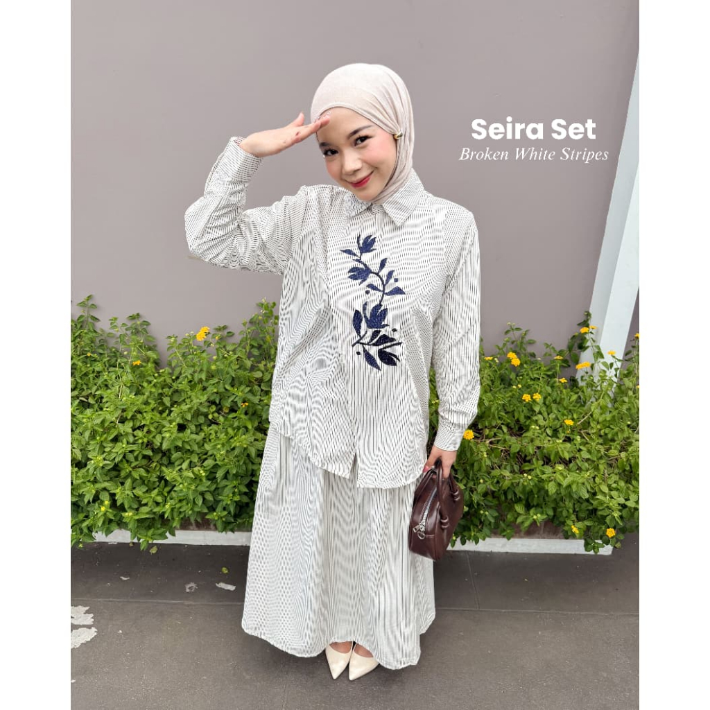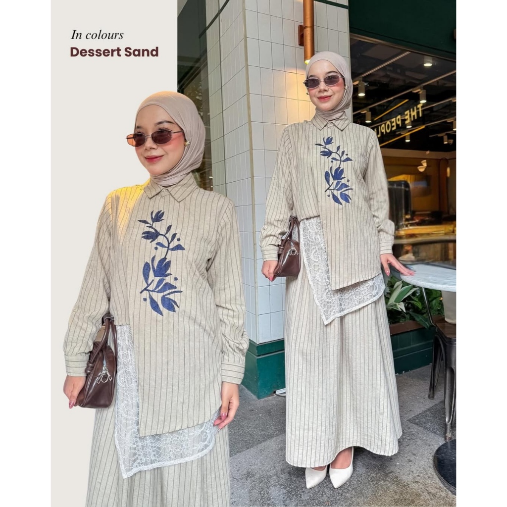 Kamila - SEIRA SET || Setelan Atasan dan Rok Wanita Motif Stripes Aksen Asimetris Motif Bordir