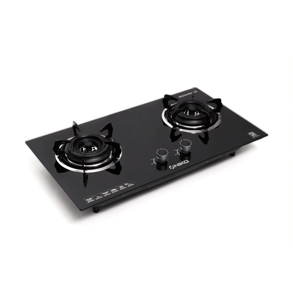 KOMPOR GAS 2 TUNGKU NIKO REFLECTION NEXT BLACK KACA TEMPERED GLASS