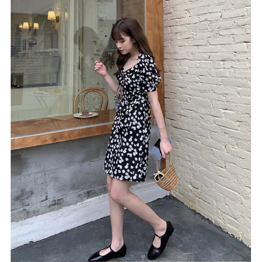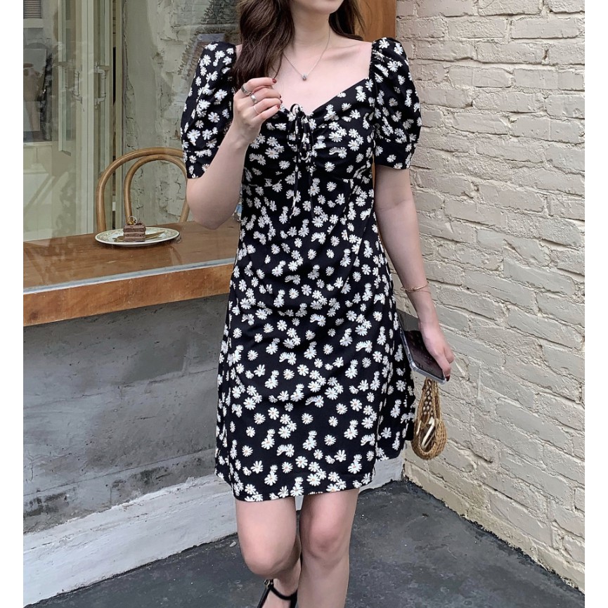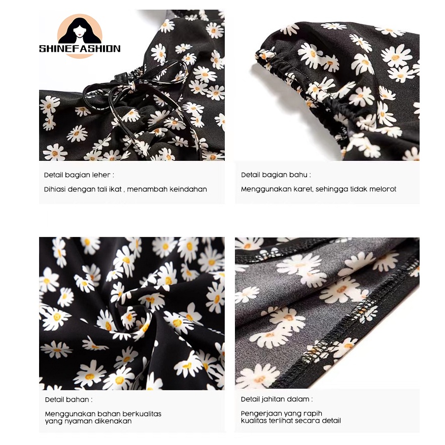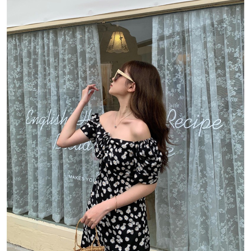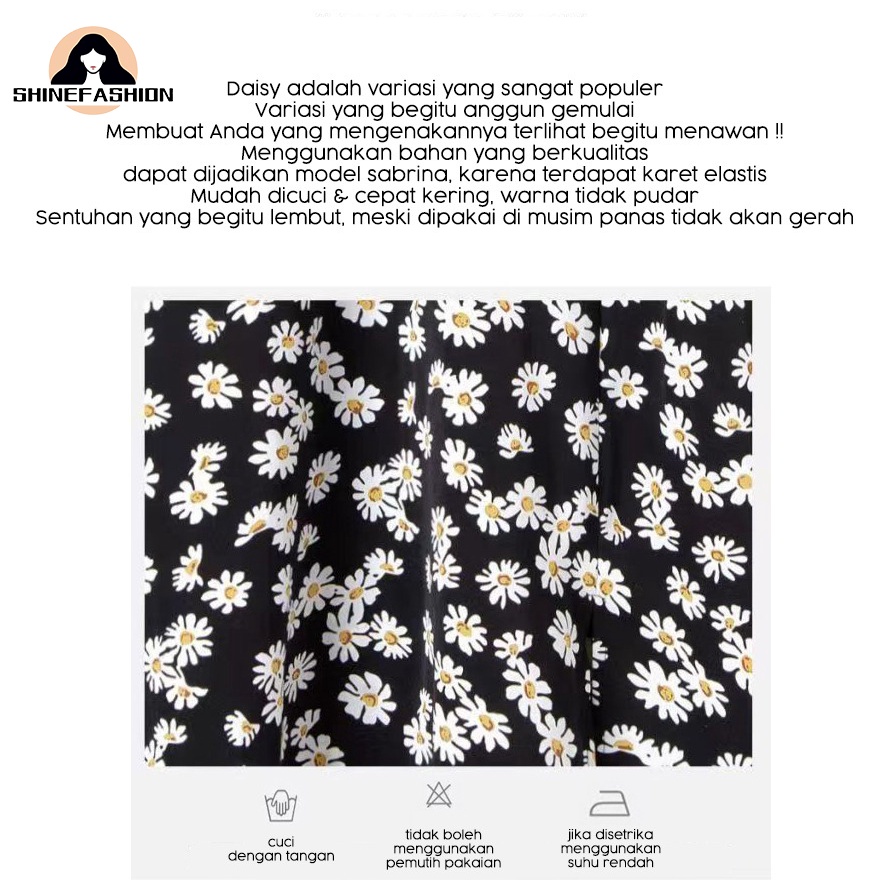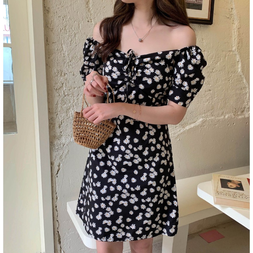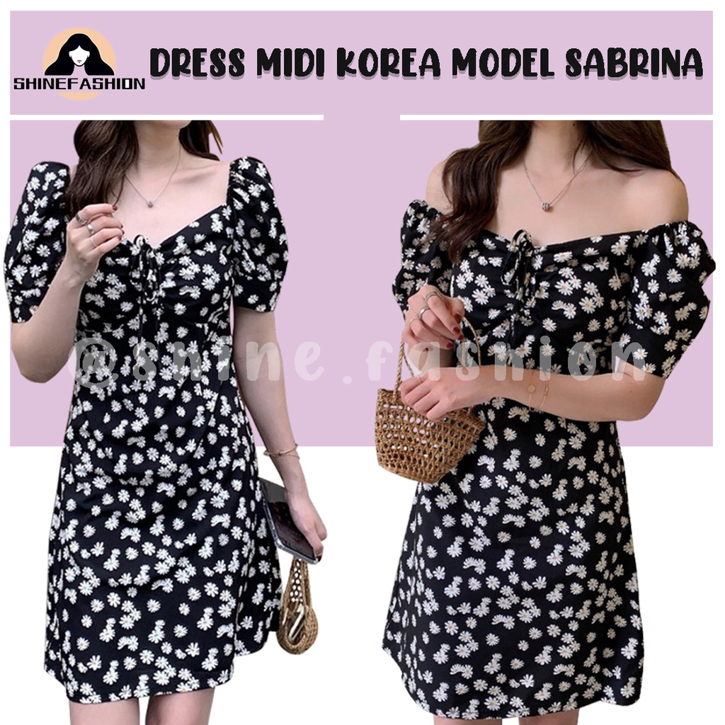 S-3XL Bodycon Dress Midi Korea Sabrina Potongan A Line Daisy Lengan Puff Gaun Wanita sexy big size