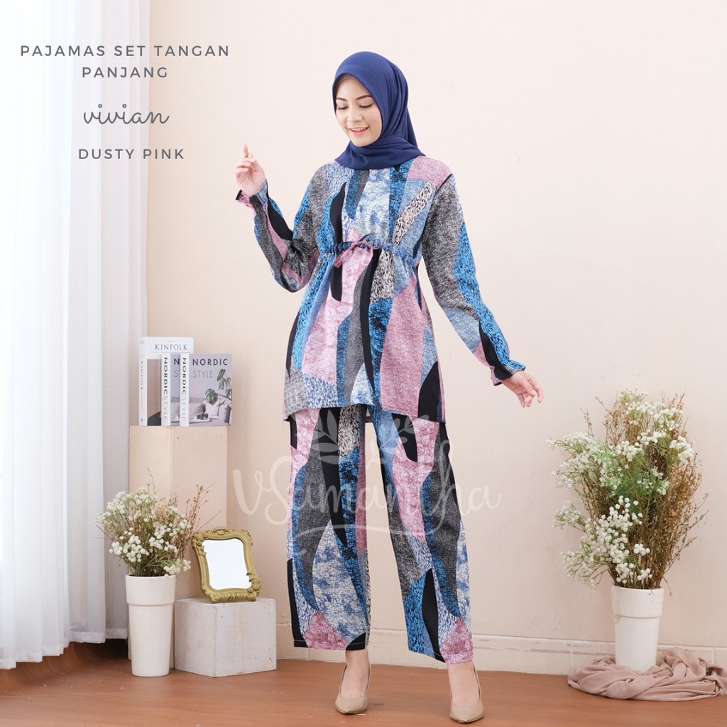 vSamantha - Pajamas Set / Piyama Set Muslim Busui Friendly - Tangan Panjang , Celana Panjang