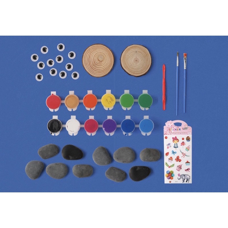 diy wood log stone painting set prakarya anak mewarnai batu dan kayu