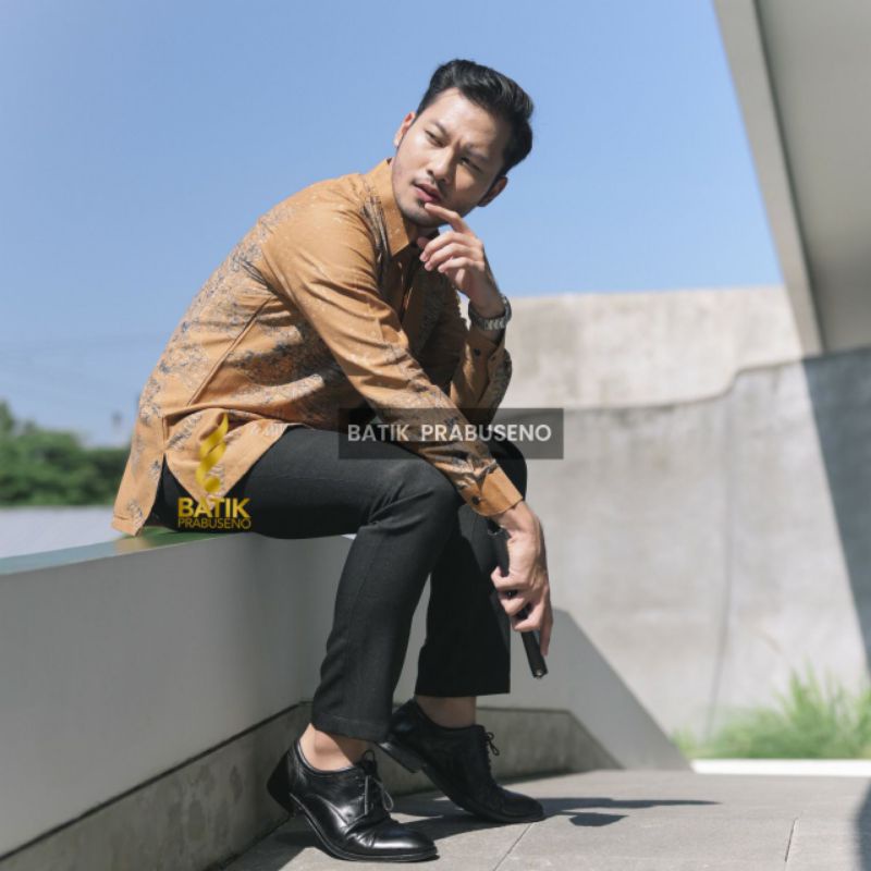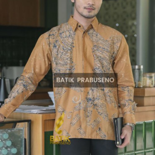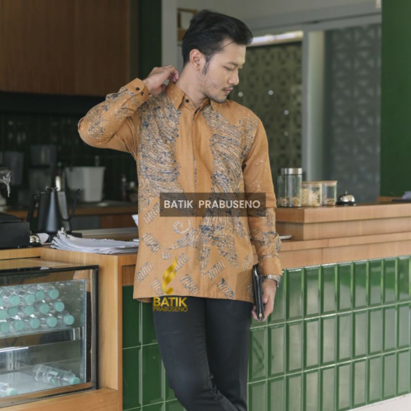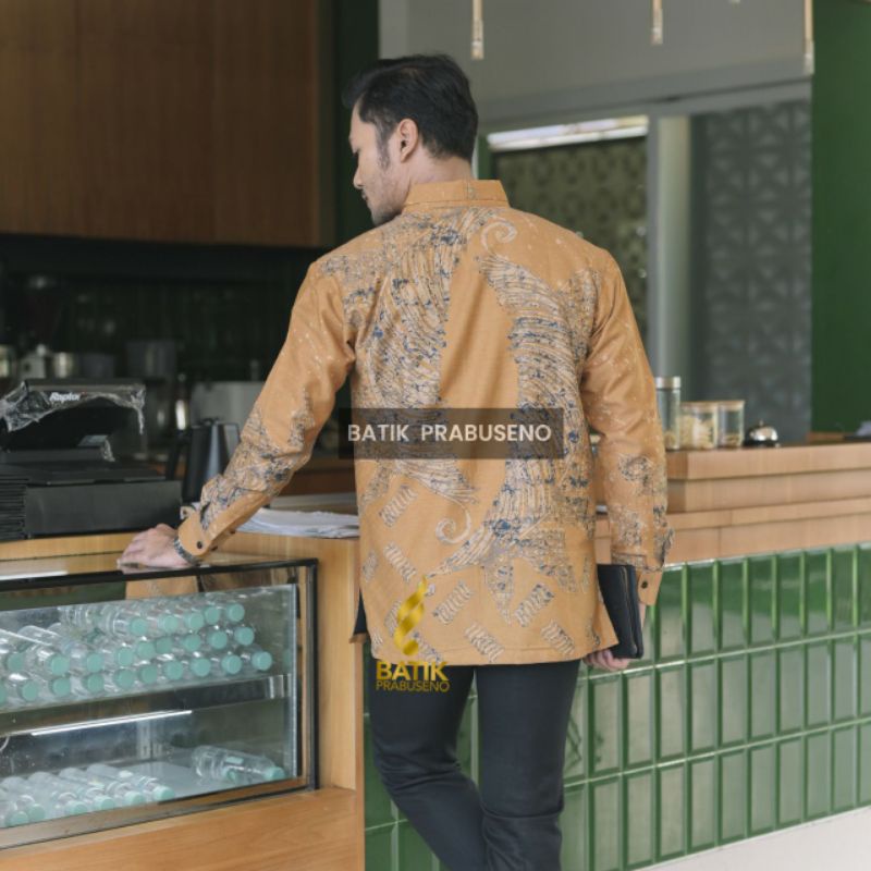Motif Udarati Kuning Bahan Katun Dobby Kemeja Batik Pria Lengan Panjang Reguler Fit Original Ori Prabuseno Full Furing Jumbo Modern Premium Hem Atasan Dewasa Garansi 100% Bisa COD