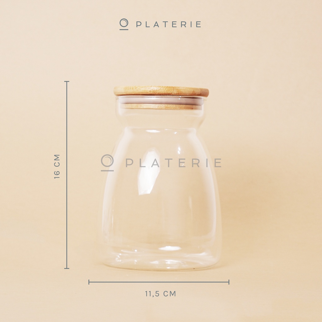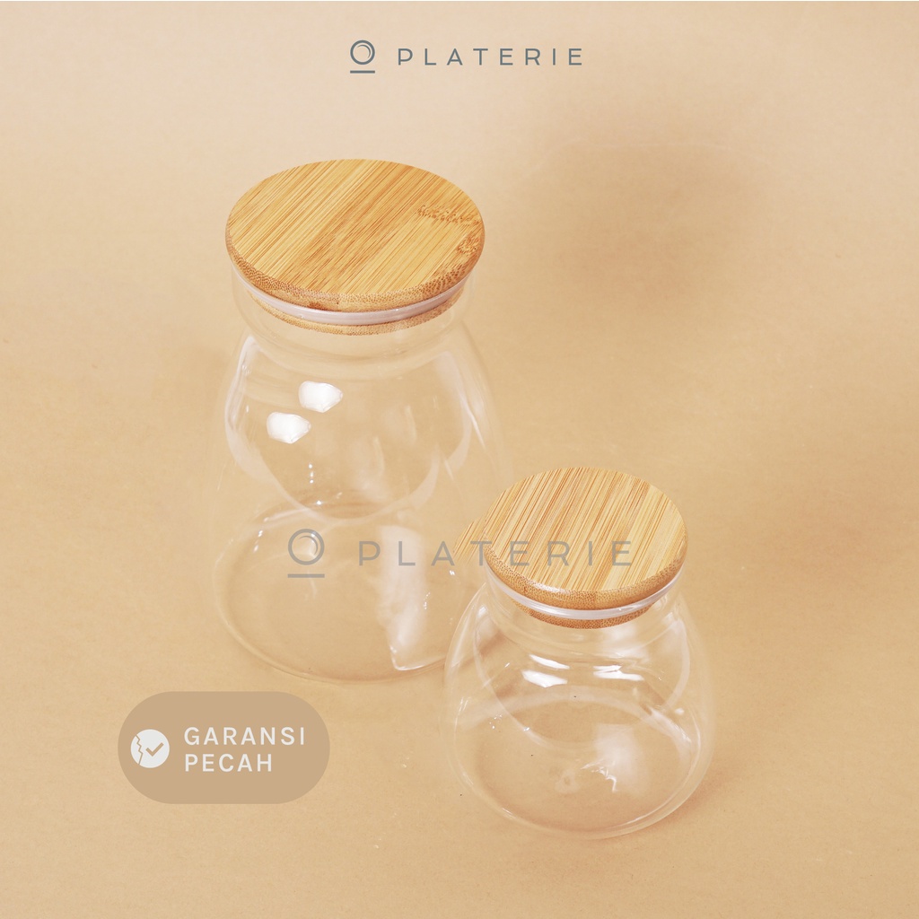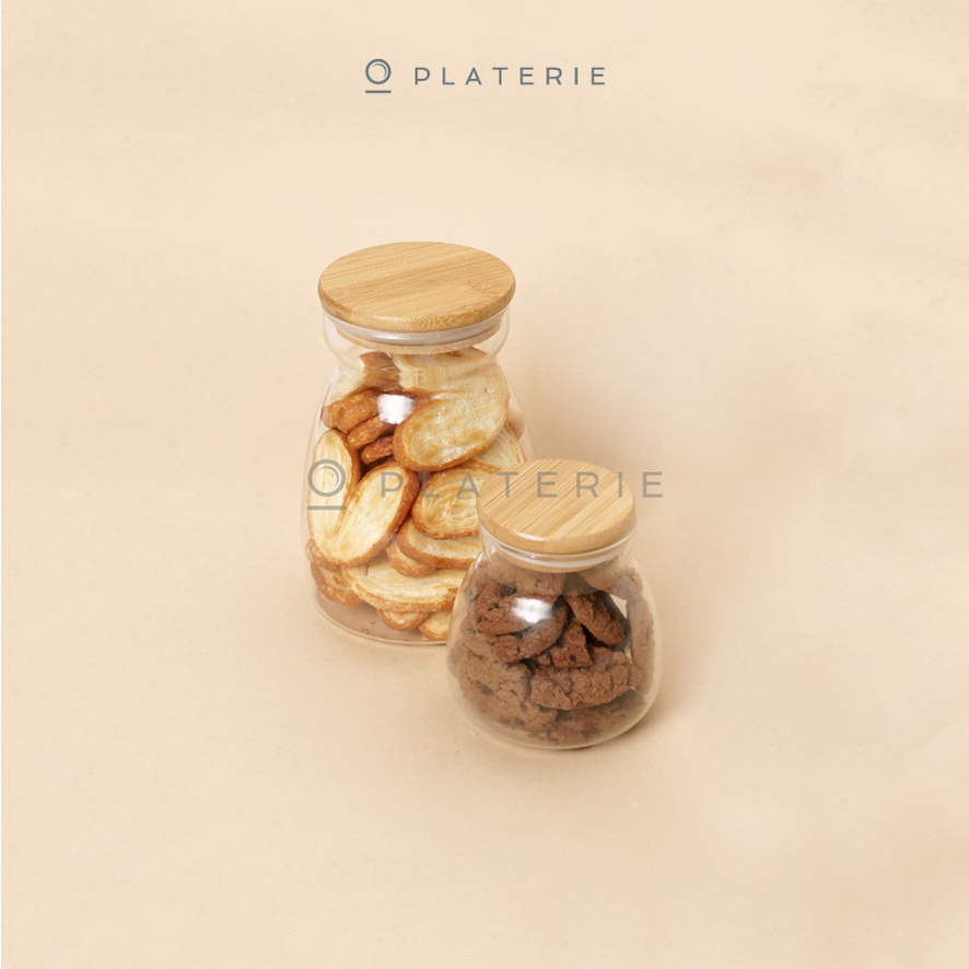 PLATERIE Toples Makanan Kaca Borosilicate Glass Jar 450/1000Ml With Wooden Lid