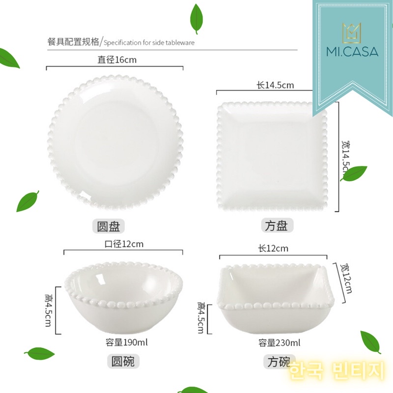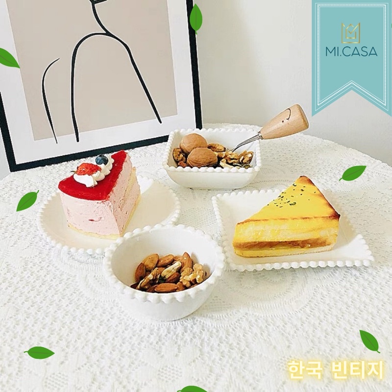 Mi.casa - Pearl Dots Korea Aesthetic Vintage Small Plate/Bowl/ Piring/Mangkuk