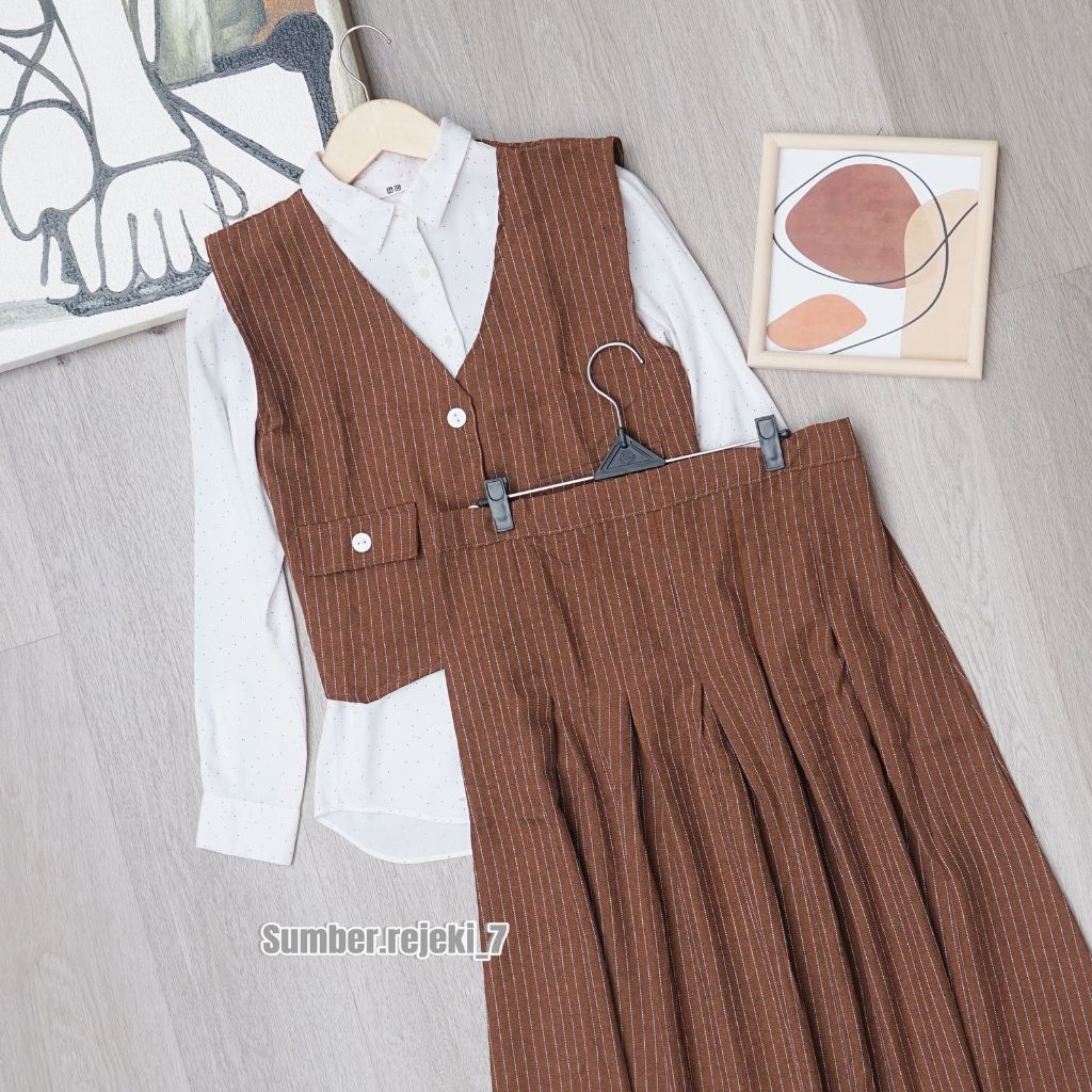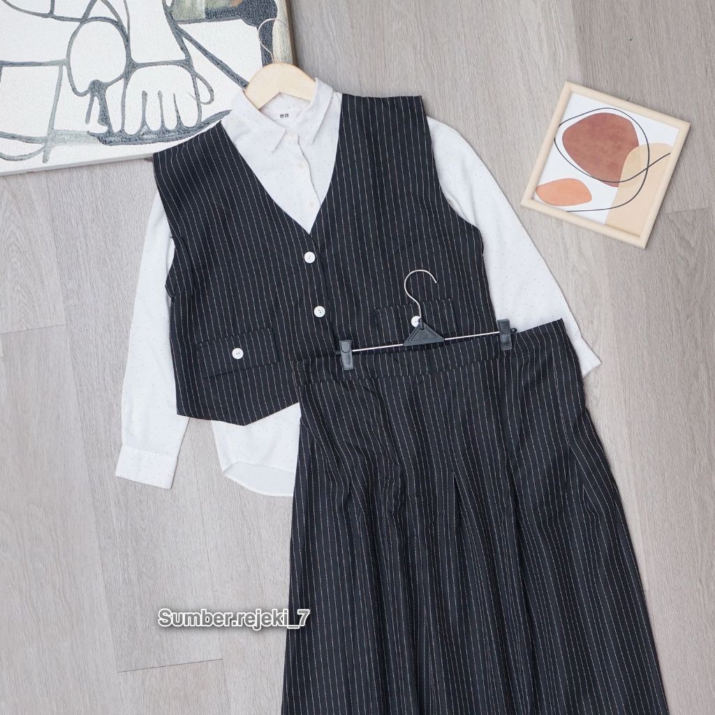 Setelan Vest Dan Rok Korean Style /One Set Rompi and Skirt /Blazer Wanita Kekinian Premium
