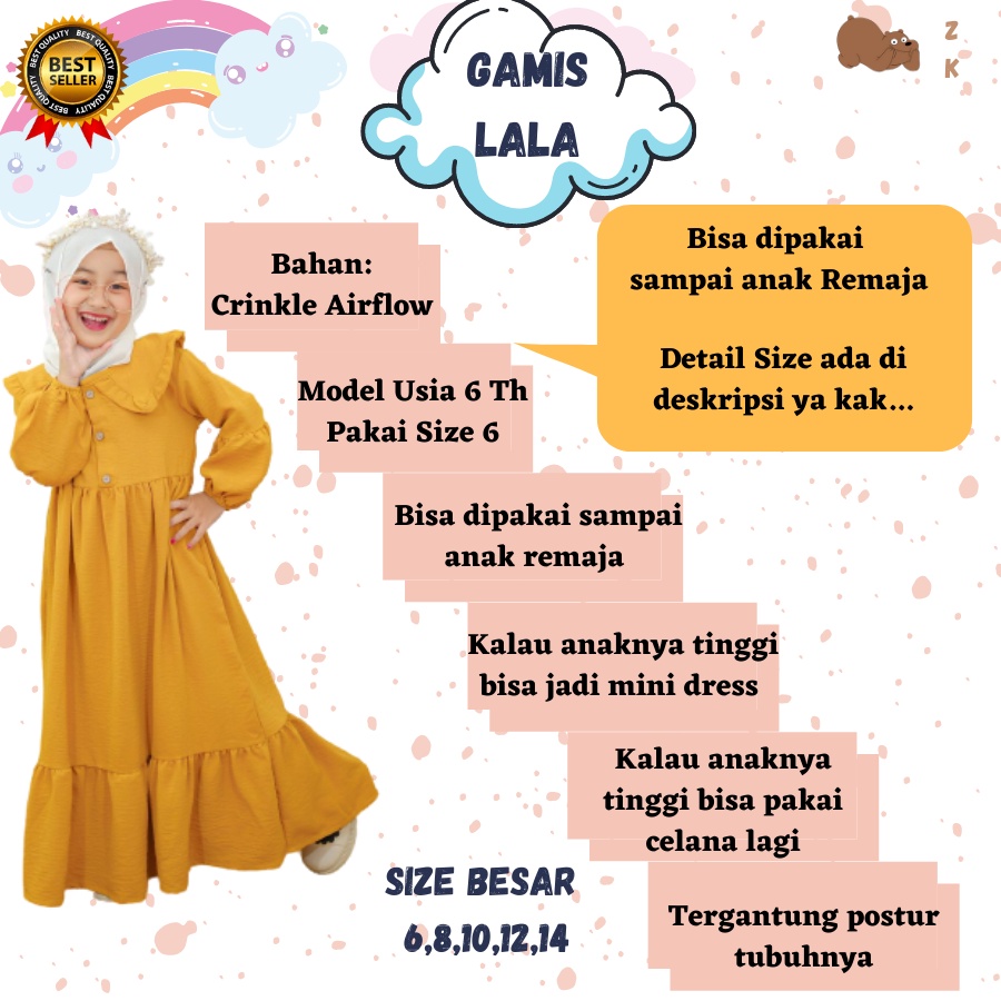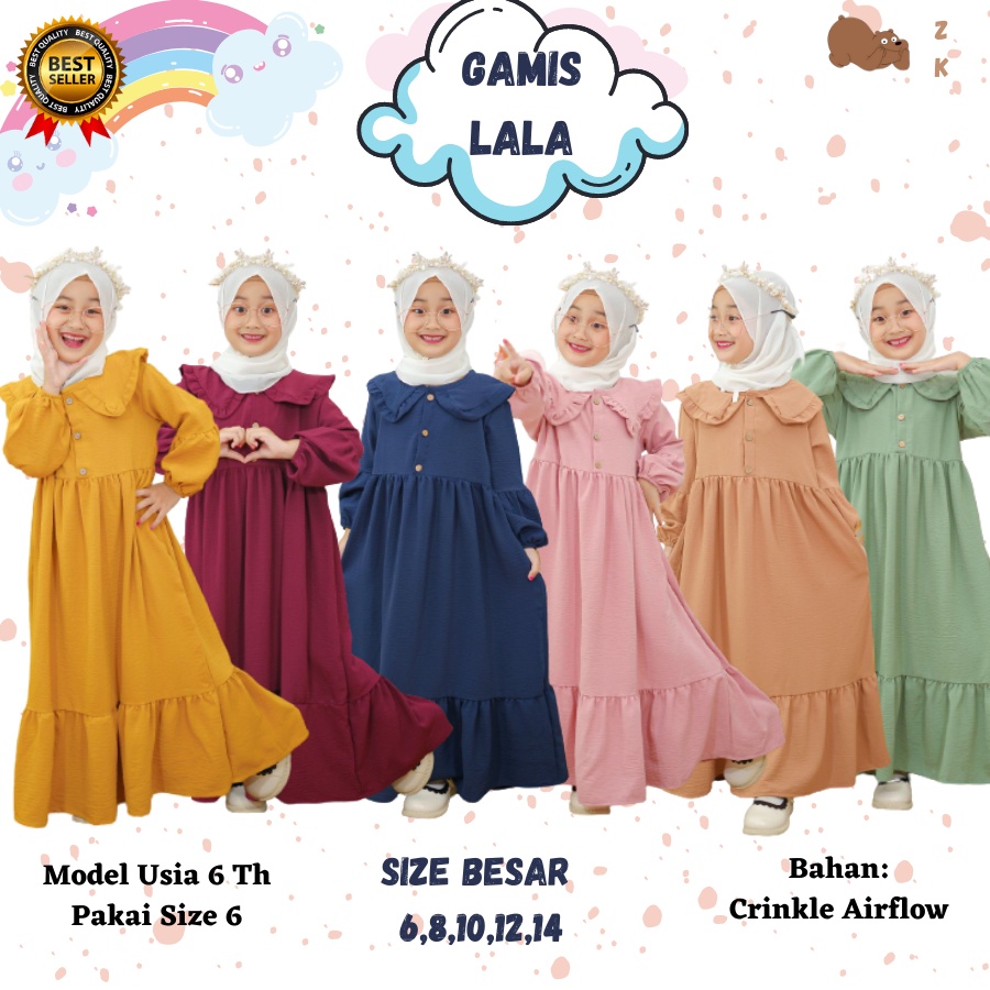 GAMIS LALA Pakaian Baju Gamis Dress Dres Lengan Panjang Anak & Bayi Remaja Muslim Muslimah Perempuan Wanita Cewek Cewe Usia Umur 5 6 7 8 9 10 11 12 13 14 15 16 17 18 19 20 Tahun Neeca ZyasKids