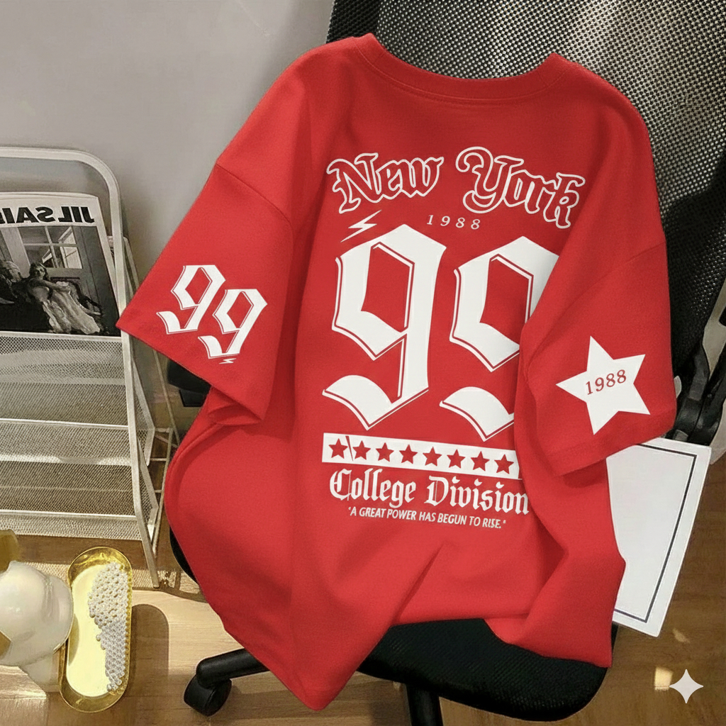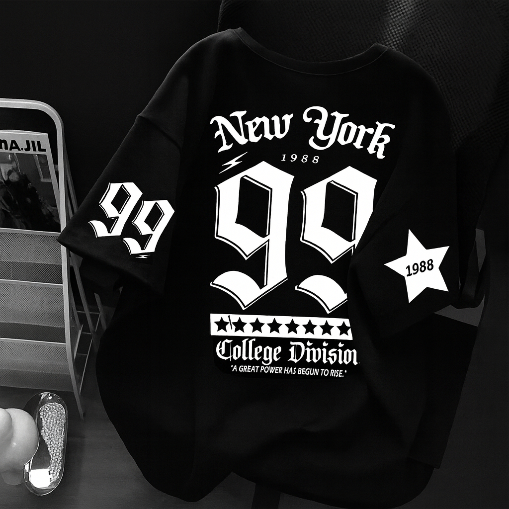 Wenz Kaos Distro Pria Wanita Oversize New York 99 College Division 1988 Streetwear Jersey Hitam Putih Unisex Cowok cewek Tshirt Premium Cotton" lengan pendek style kekinian