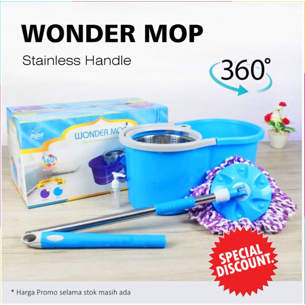[New] Alat Pel Lantai Putar 360 - WONDER MOP Spin Stainless Handle