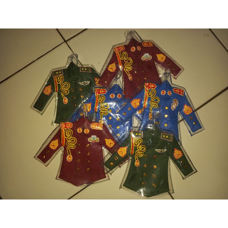 Gantungan aksesoris di mobil dan gantungan kunci, tempelan kaca mobil baju TNI kecil / Baju kecil aksesoris TNI / Baju kecil aksesoris Akpol / Baju kecil aksesoris Akmil / Gantungan mobil Polisis / Polantas / Sabara