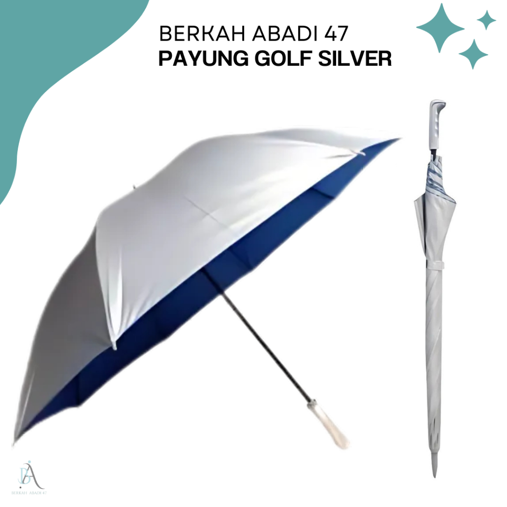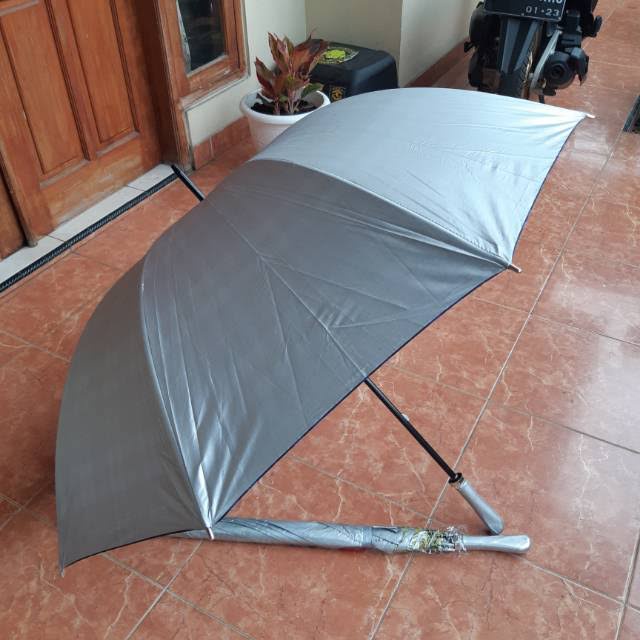 Payung Jumbo Golf Silver Besar Polos Payung Mobil Warna Silver Anti Angin dan UV / Payung Jumbo Warna Silver Abu