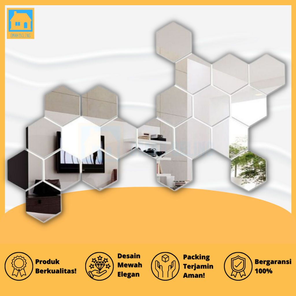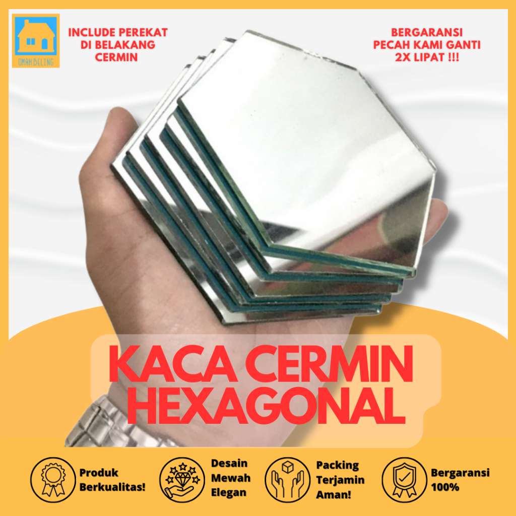 7Pcs Sticker Asli Kaca Hexagonal Mirror Wall Decoration / Cermin Hexagonal Dekorasi Dinding / Stiker Cermin Segi Enam / Cermin Aesthetic Dinding Hexagonal / Kaca Hexagonal