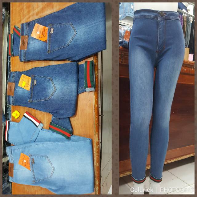 CELANA PANJANG HIGH WAIST WANITA SOFTJEANS CEWEK LIS LIPAT BAWAH STIC BALIK DENIM NEW ARRIVAL