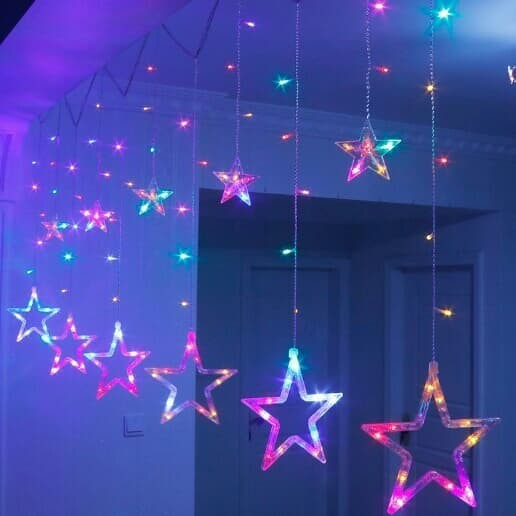 Lampu Natal Tirai Bintang BulanLED Tumblr Light Tirai | LED Star Curtain Light Wedding Warmwhite
