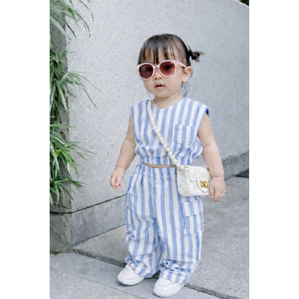 SASA Oneset Salur Anak Cewek Lucu Gemoy Bahan Katun Salur Adem Setelan Anak Stripe Kekinian Terlaris Gratis Ongkir Bisa Cod S M L Fashion