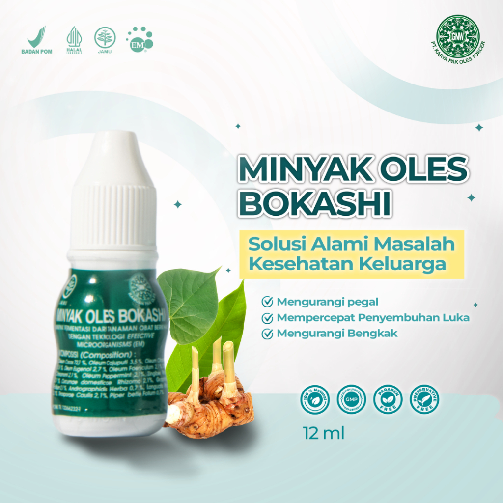 Minyak Oles Bokashi Asli – Minyak Herbal Tradisional Meredakan Masuk Angin Pegal Linu Gatal Bisul dan Gigitan Serangga 140ml