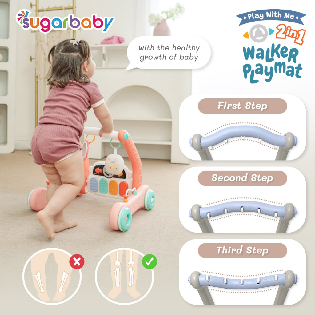 Sugar Baby 2 in 1 Baby Walker and Piano Playmat | Alat Bantu Jalan Anak | Playgym Mainan Bayi