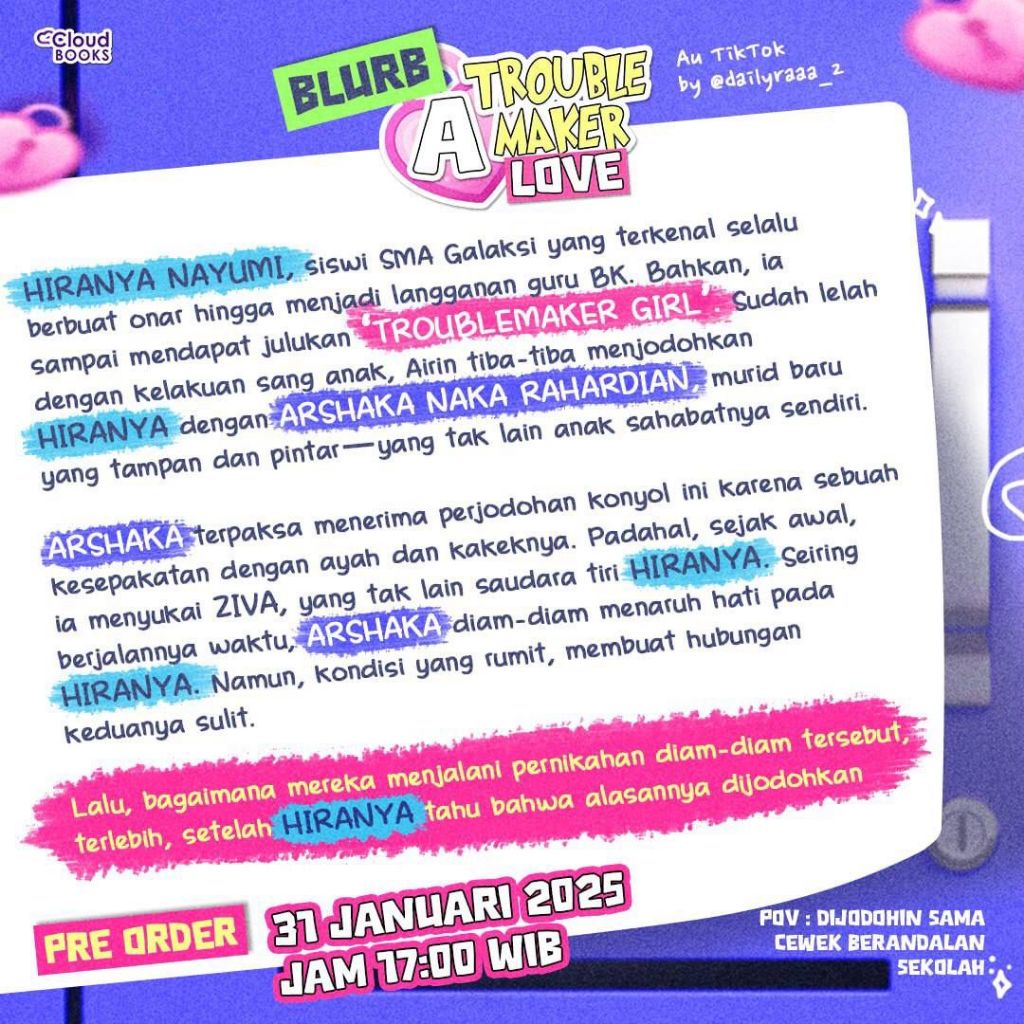 Pre Order - Buku Novel - A Troublemaker Love - Keyra Andriani - Cloud Books - Bumifiksi