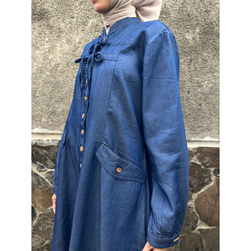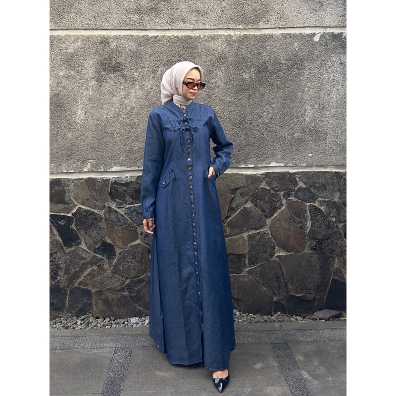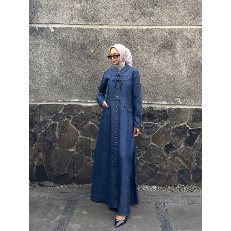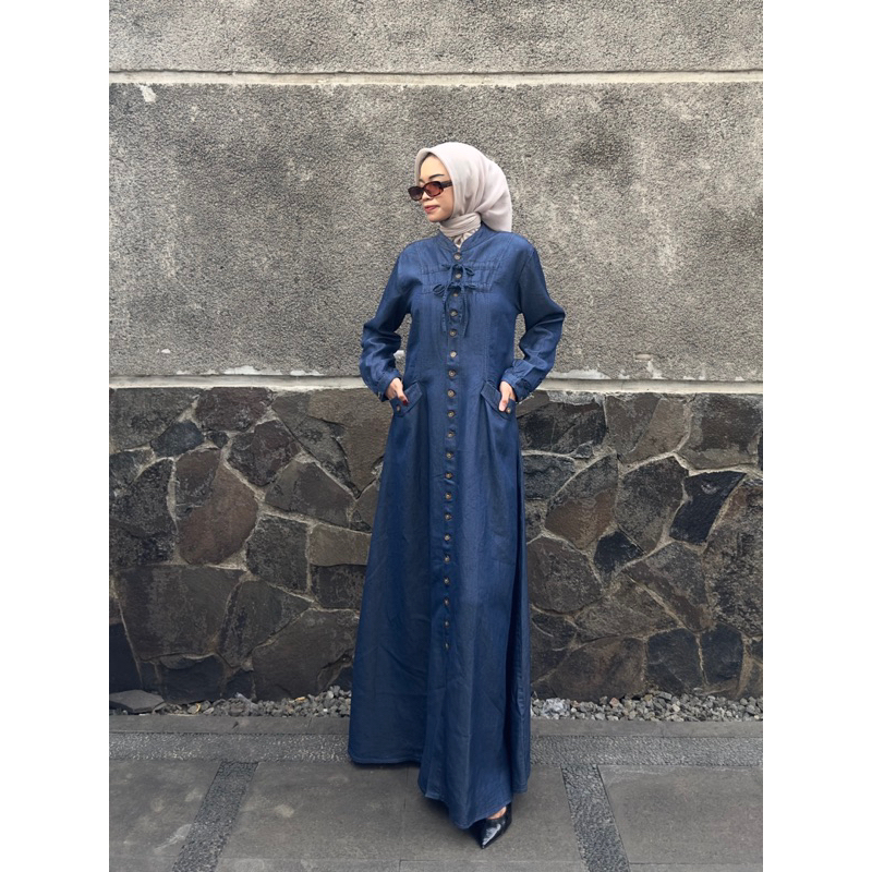 DIDEN GO Denim Collection Gamis Diva Dress Kancing Seribu