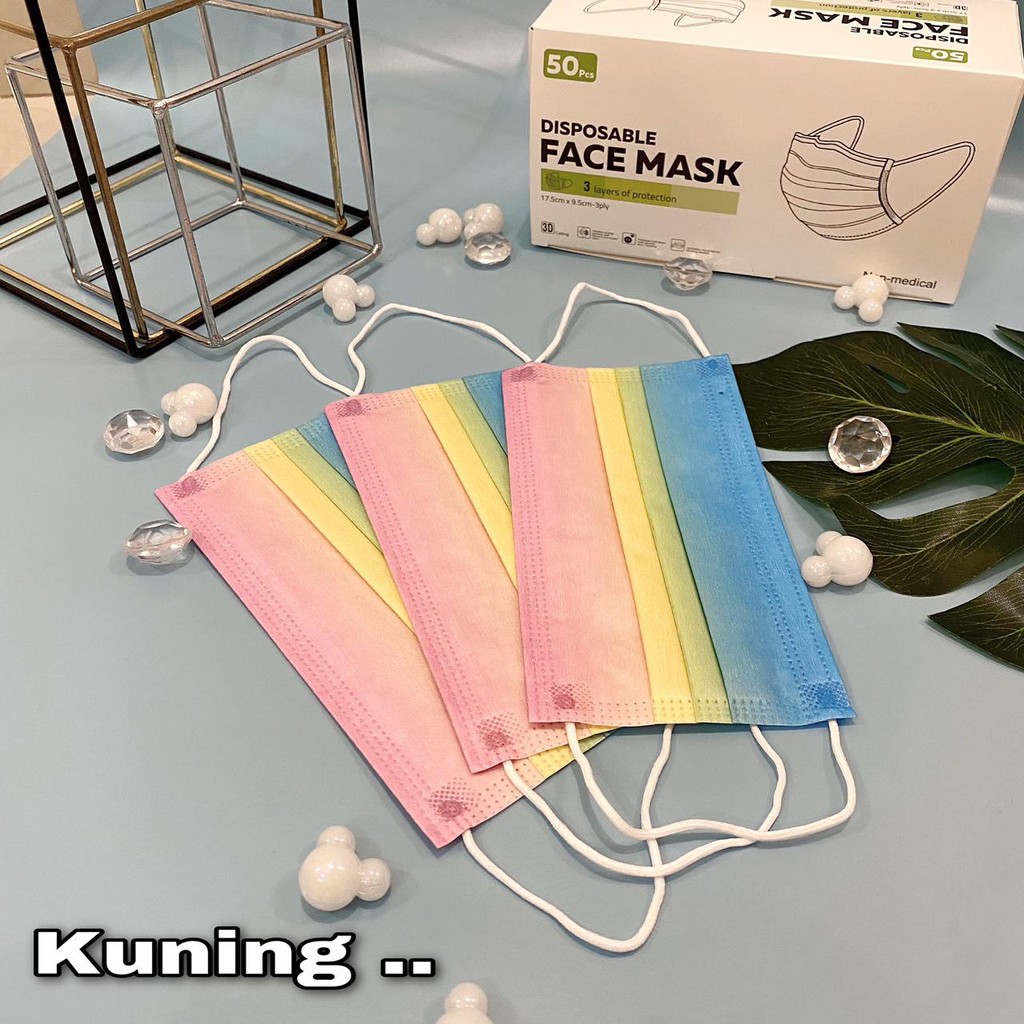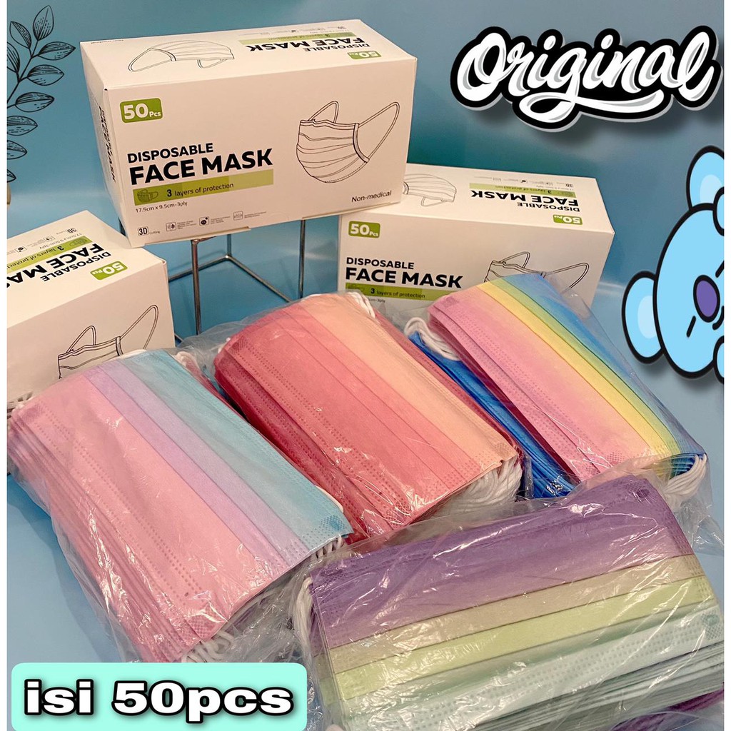 MASKER 3PLY EARLOOP Kpop Rainbow Dan Pelangi Styles Import Premium