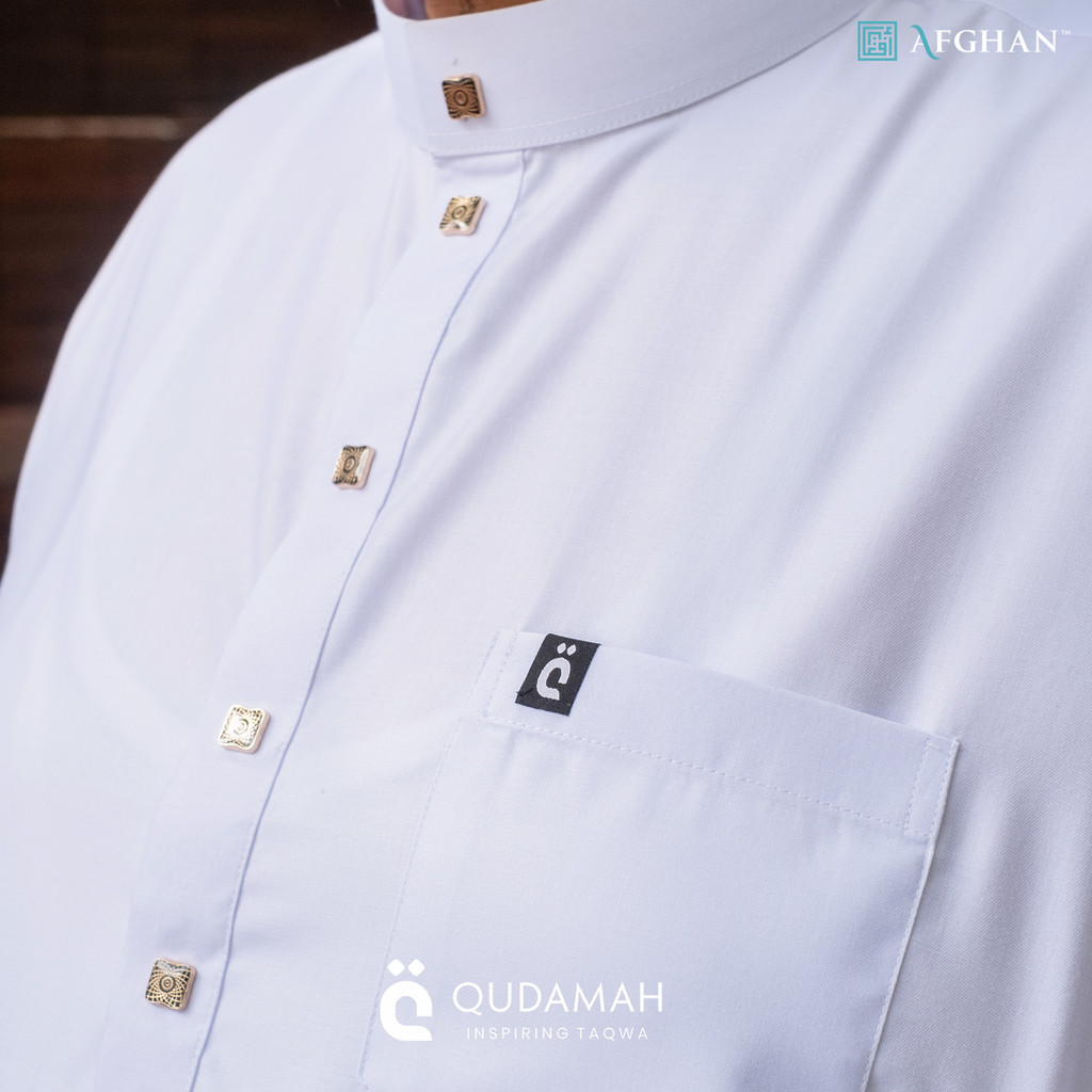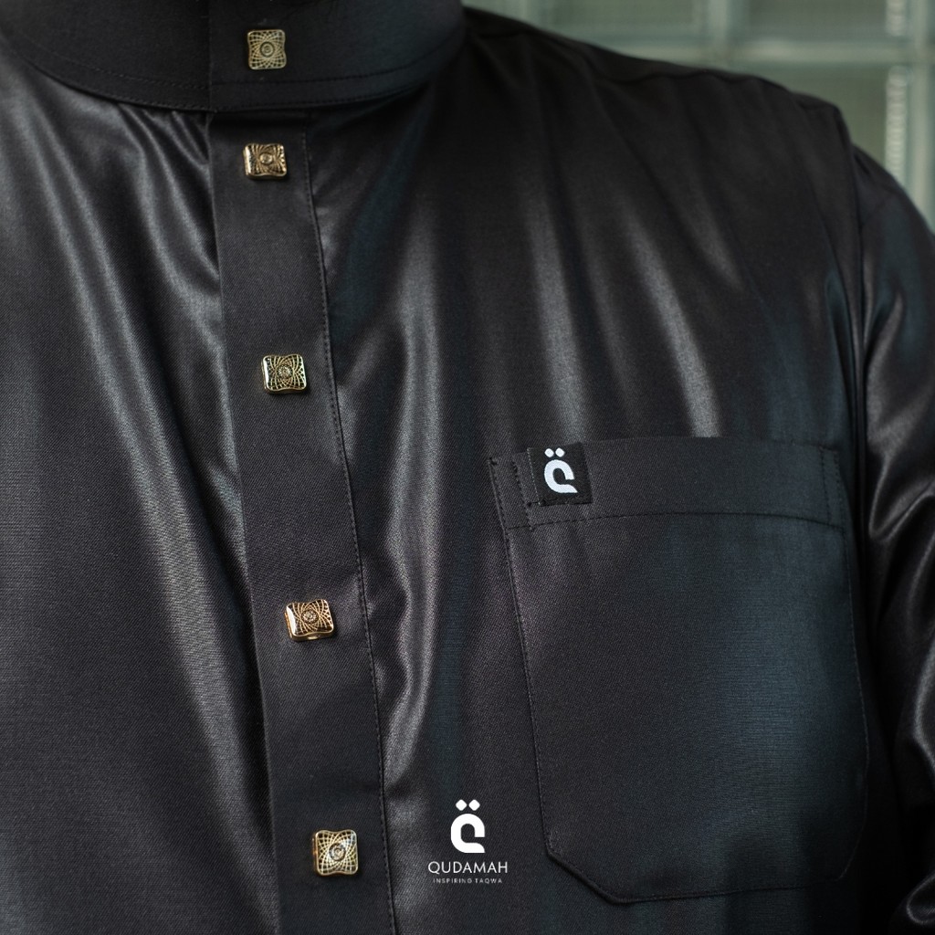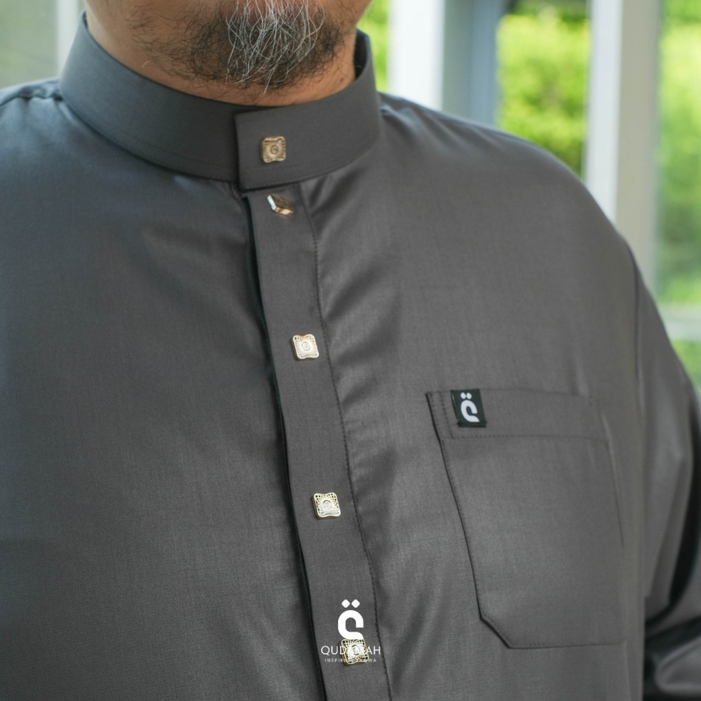 QUDAMAH | Jubah Qassam Jumbo Lengan Panjang Manset Kancing Snap Bahan Katun Premium Size XXXL XXXXL XXXXXL Warna Putih, Hitam, Navy, Abu Biru & Abu Tua Model Juba Qassam Gamis Pria BIG SIZE