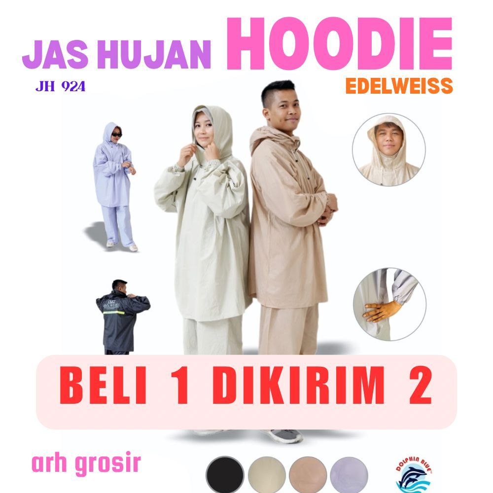 Beli 1 dikirim 2 Jas Hujan Hoodie Ponco Lengan Celana Waterproof PVC DOLPHIN BLUE Jh 924