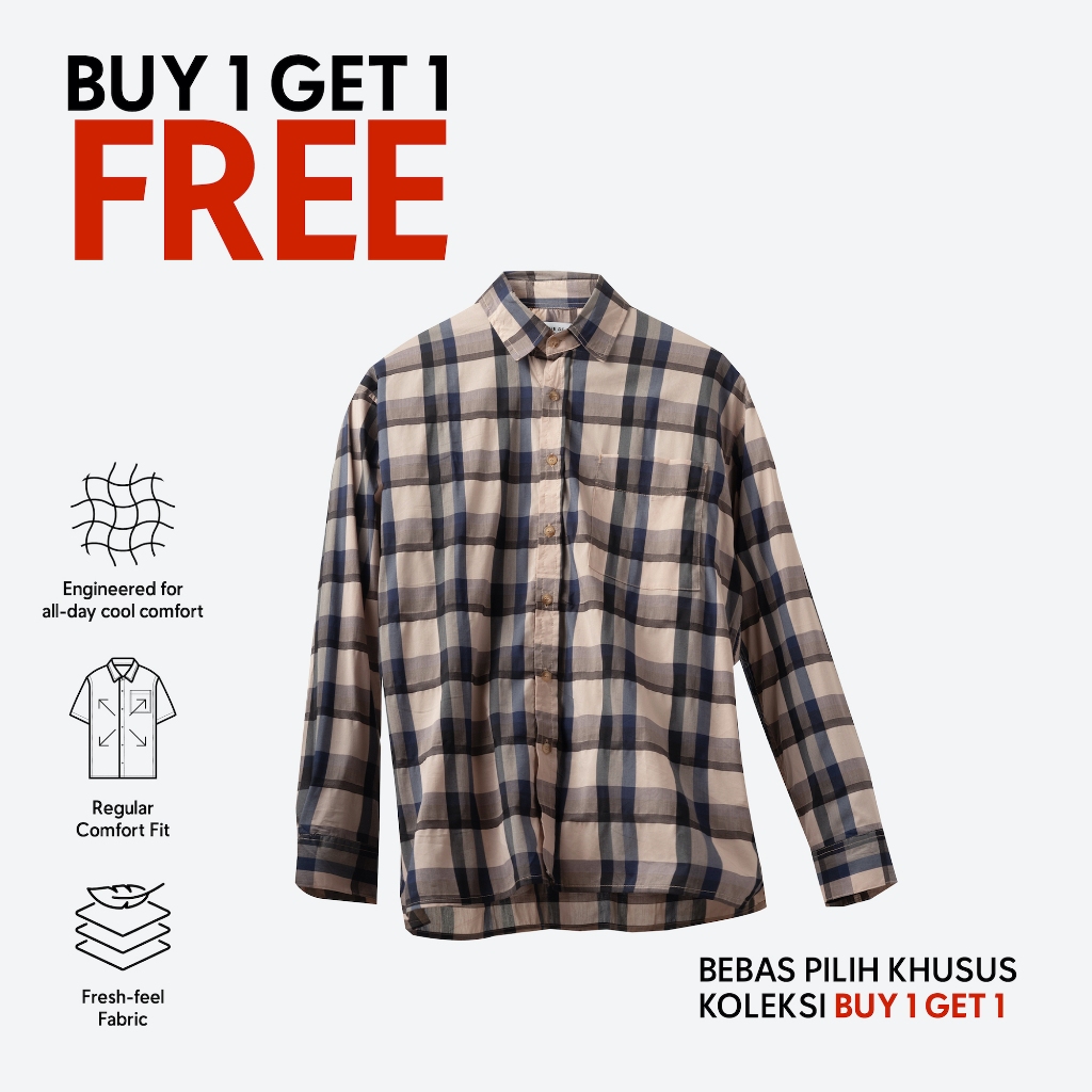 [B1G1] TENUE Kemeja Lengan Panjang - Social Creatures Plaid Shirt - Navy Cream