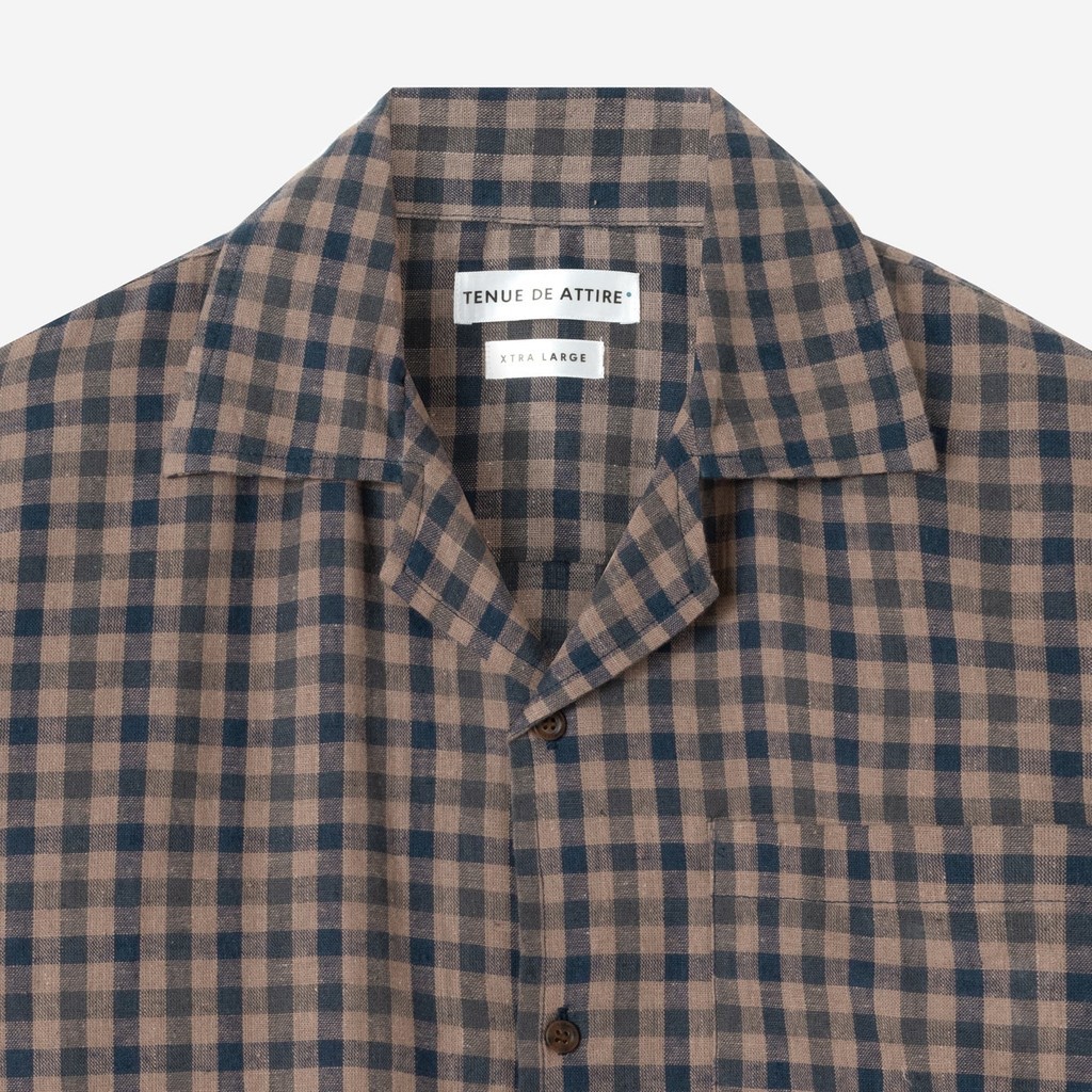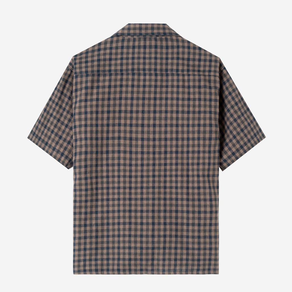[B1G1] TENUE Kemeja Bowling Lengan Pendek - Sunny Vacation Plaid Shirt - Navy Brown Squared
