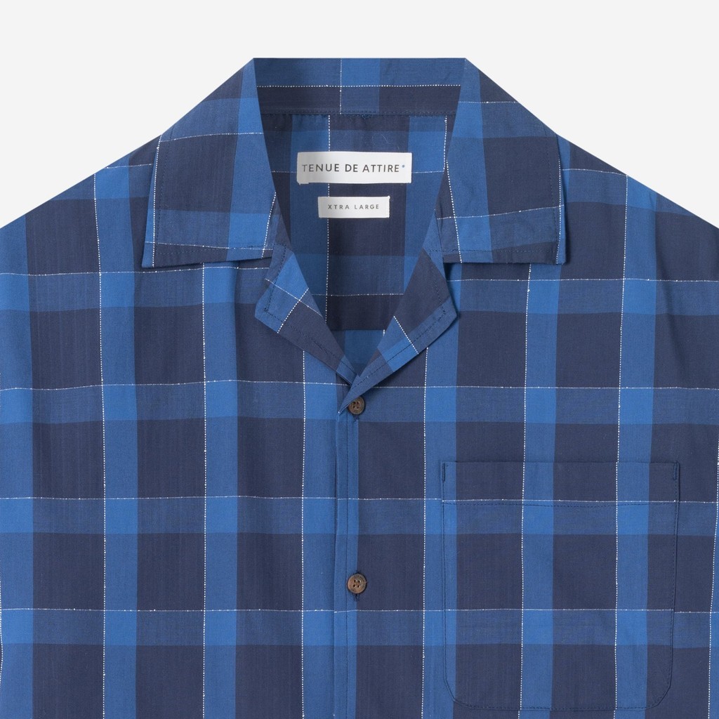 [B1G1] TENUE Kemeja Bowling Lengan Pendek - Social Creatures Plaid Shirt - Blue Navy Squared