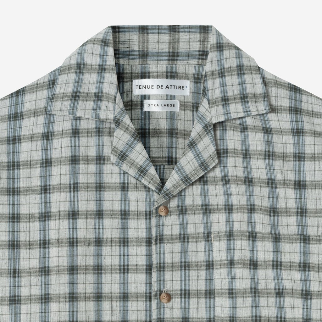 TENUE Kemeja Bowling Lengan Pendek - Sunny Vacation Plaid Shirt - Grey