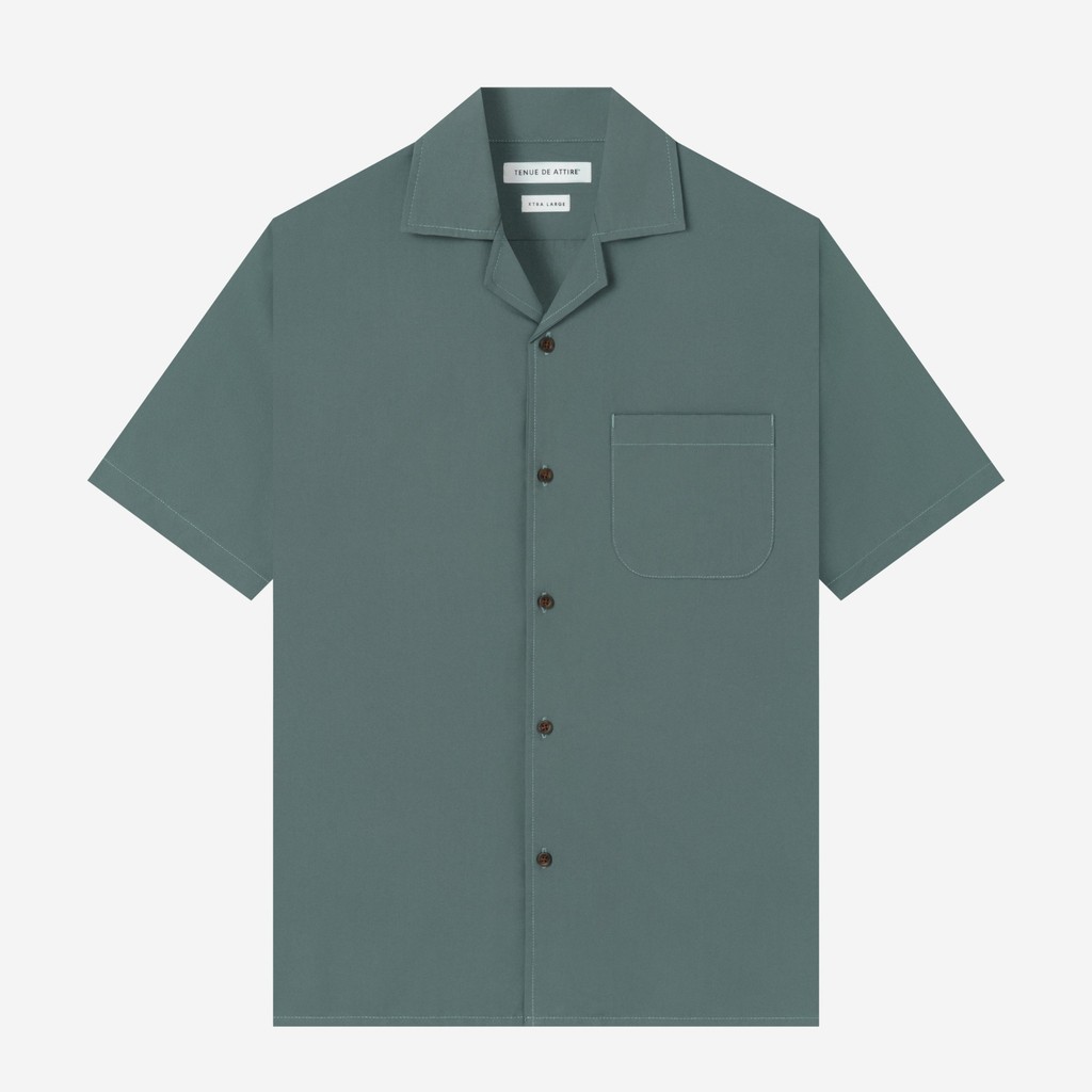 [BUNDLING] TENUE Kemeja Polos Camp Collar Lengan Pendek - CREMA - Pine Green