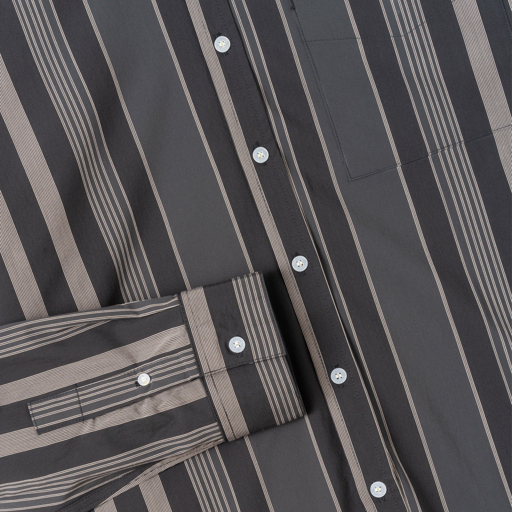 TENUE Kemeja Lengan Panjang - Social Creatures Striped Shirt - Grey Black