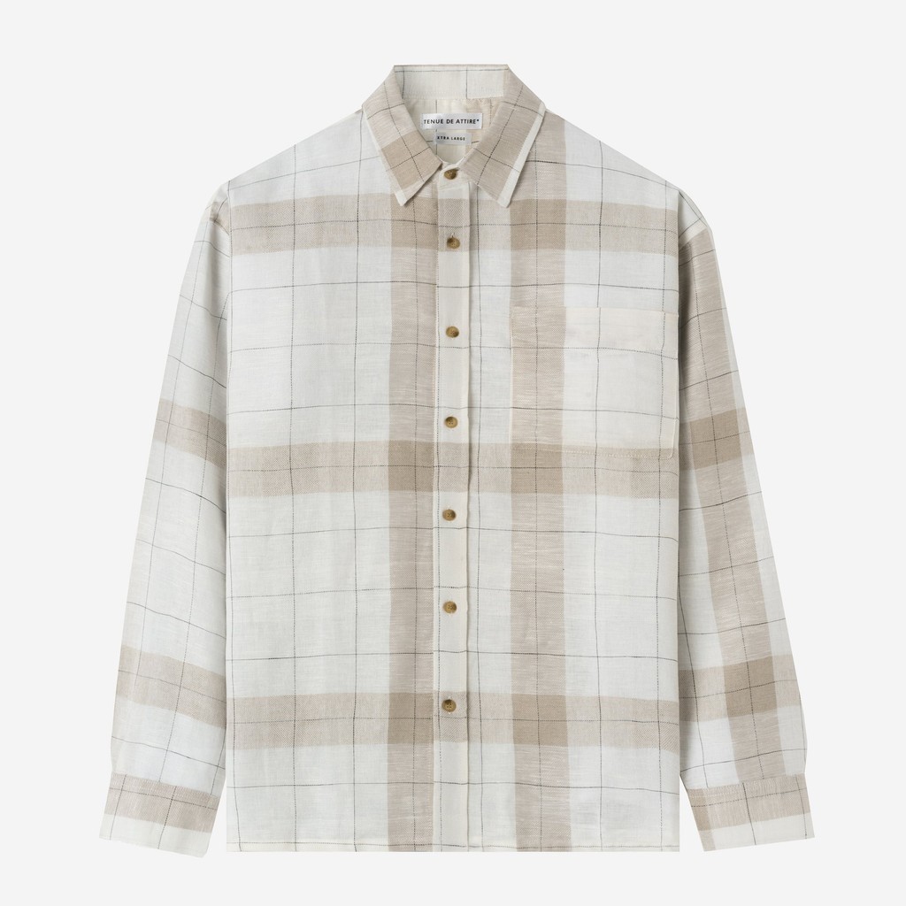 TENUE Kemeja Lengan Panjang - Sunny Vacation Plaid Shirt - Beige White
