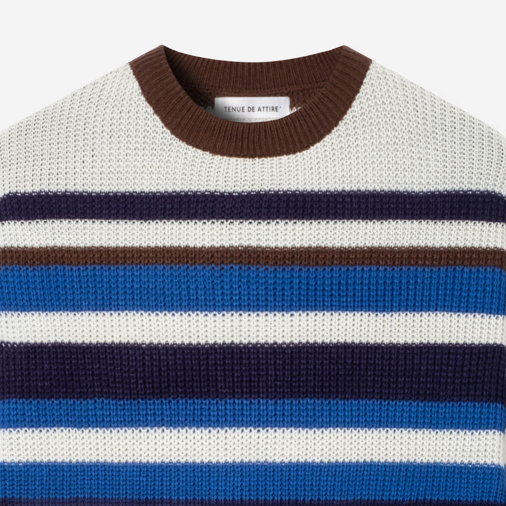 TENUE Kaos Rajut Stripes Lengan Pendek - College - Blue Brown