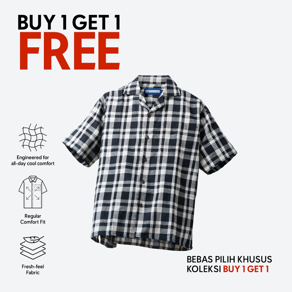[B1G1] Kemeja Tenue - Summer Classic Camp Collar Short Sleeve Shirt - Black White Square